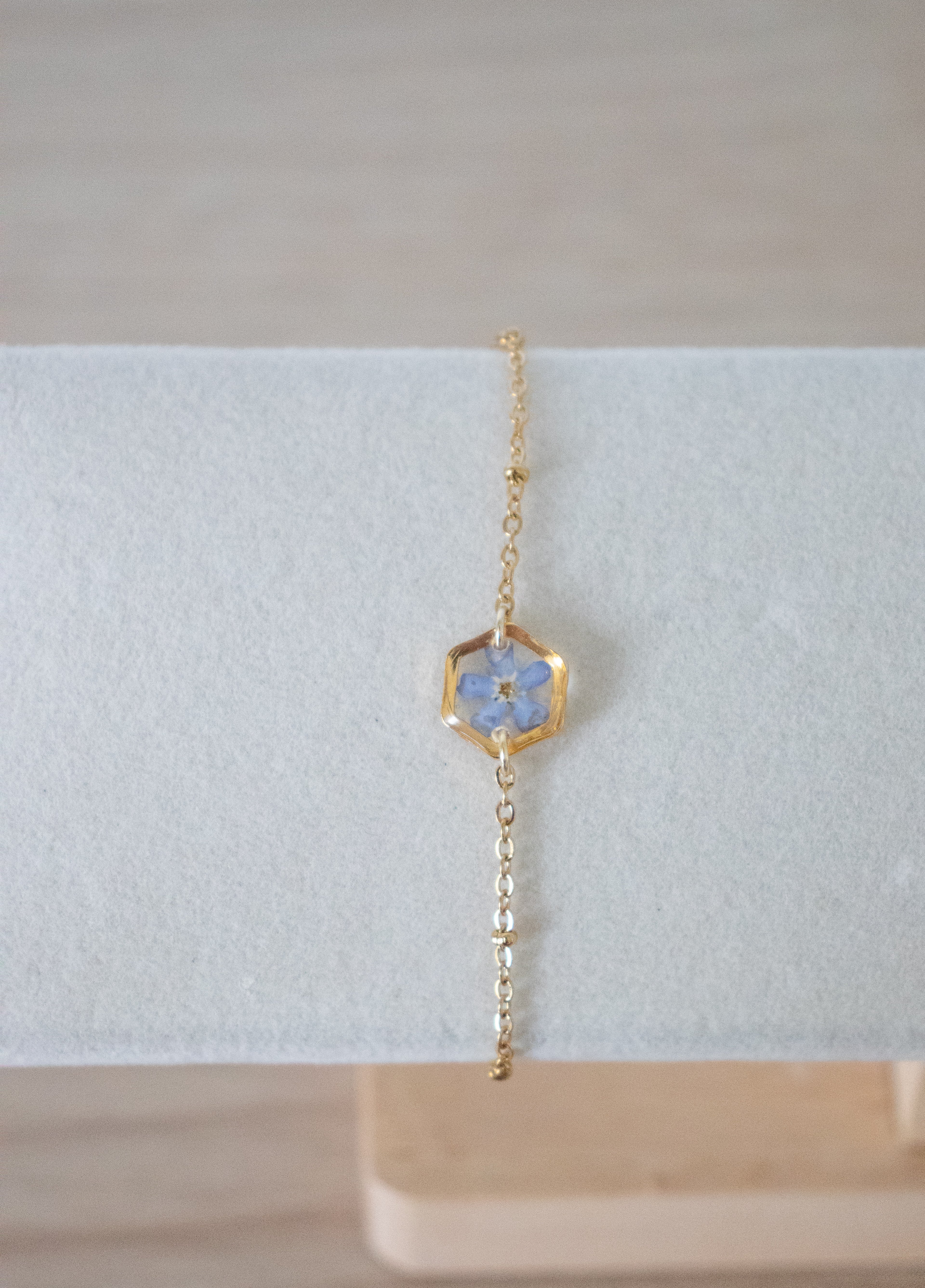Zacht, symbolisch en met de hand gemaakt — elk juweel draagt een écht vergeet-me-nietje in zich. Een bloemetje dat staat voor trouw, herinnering en oneindige liefde.