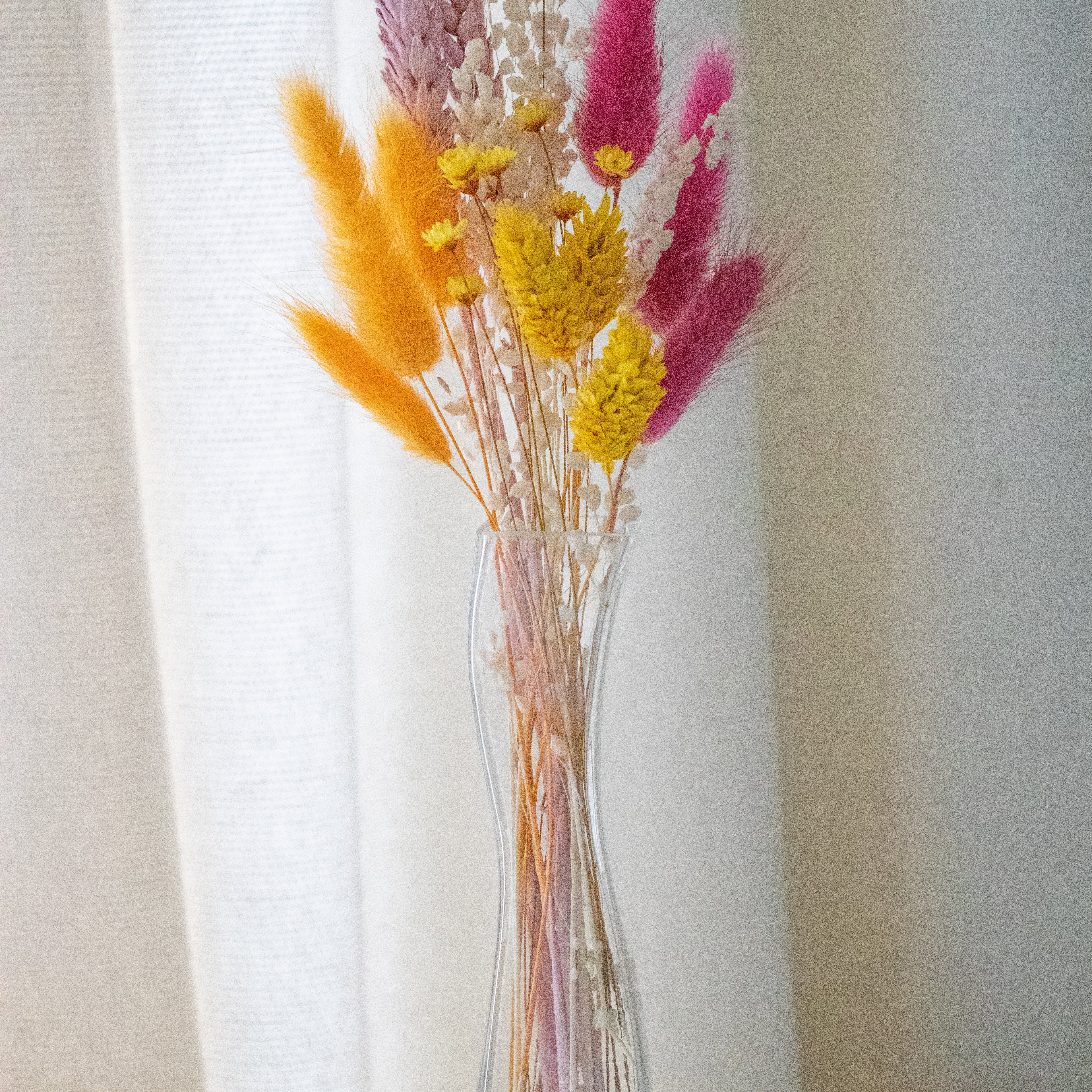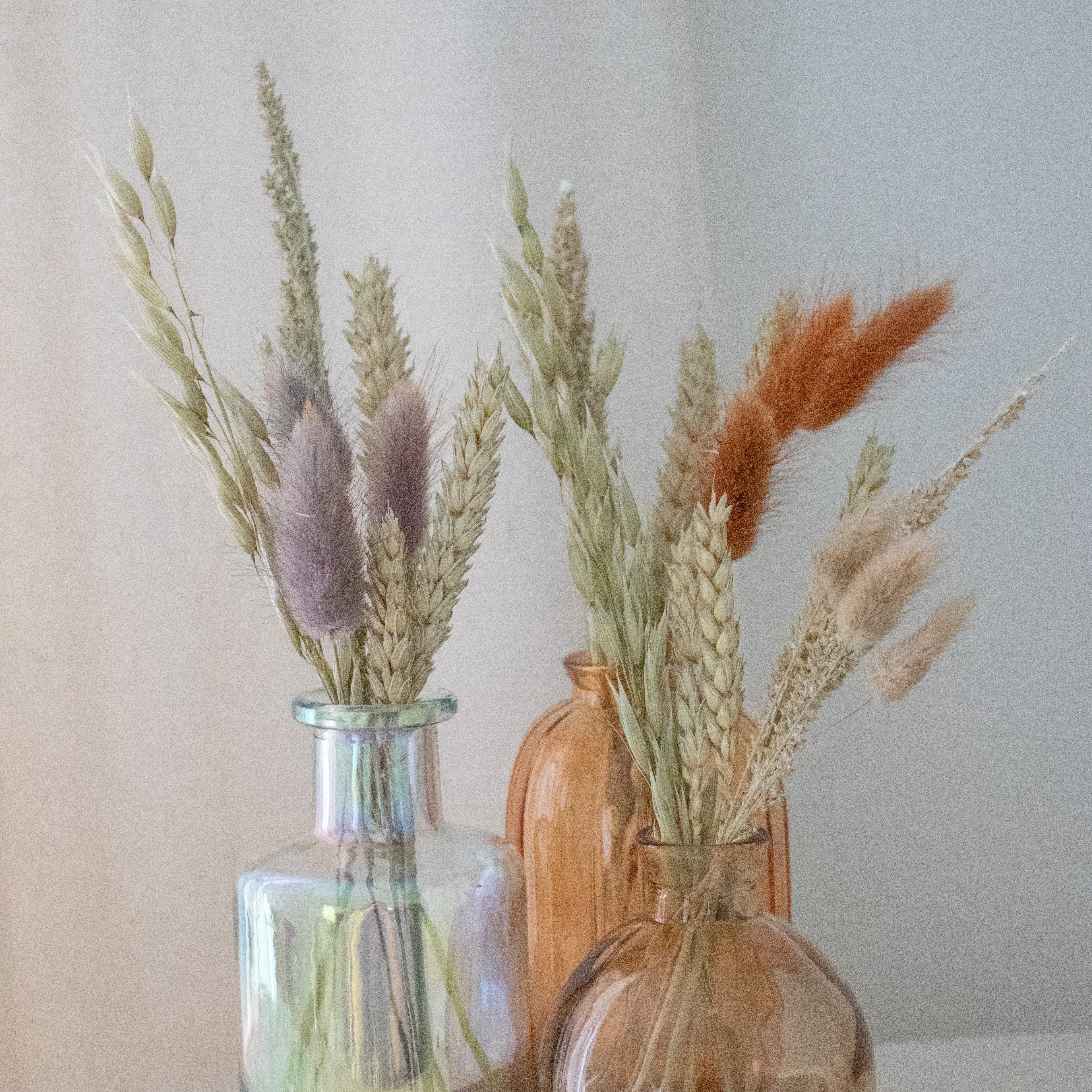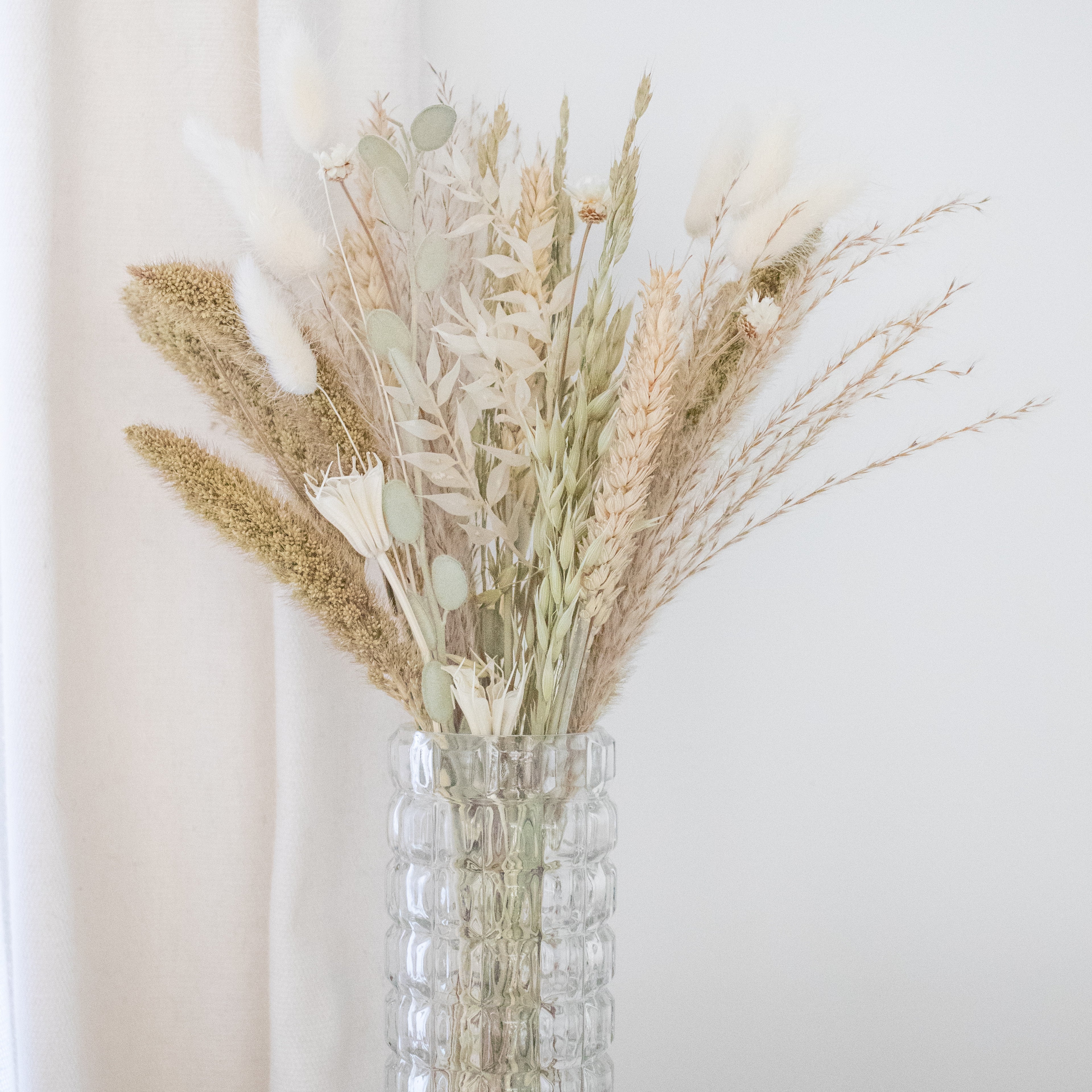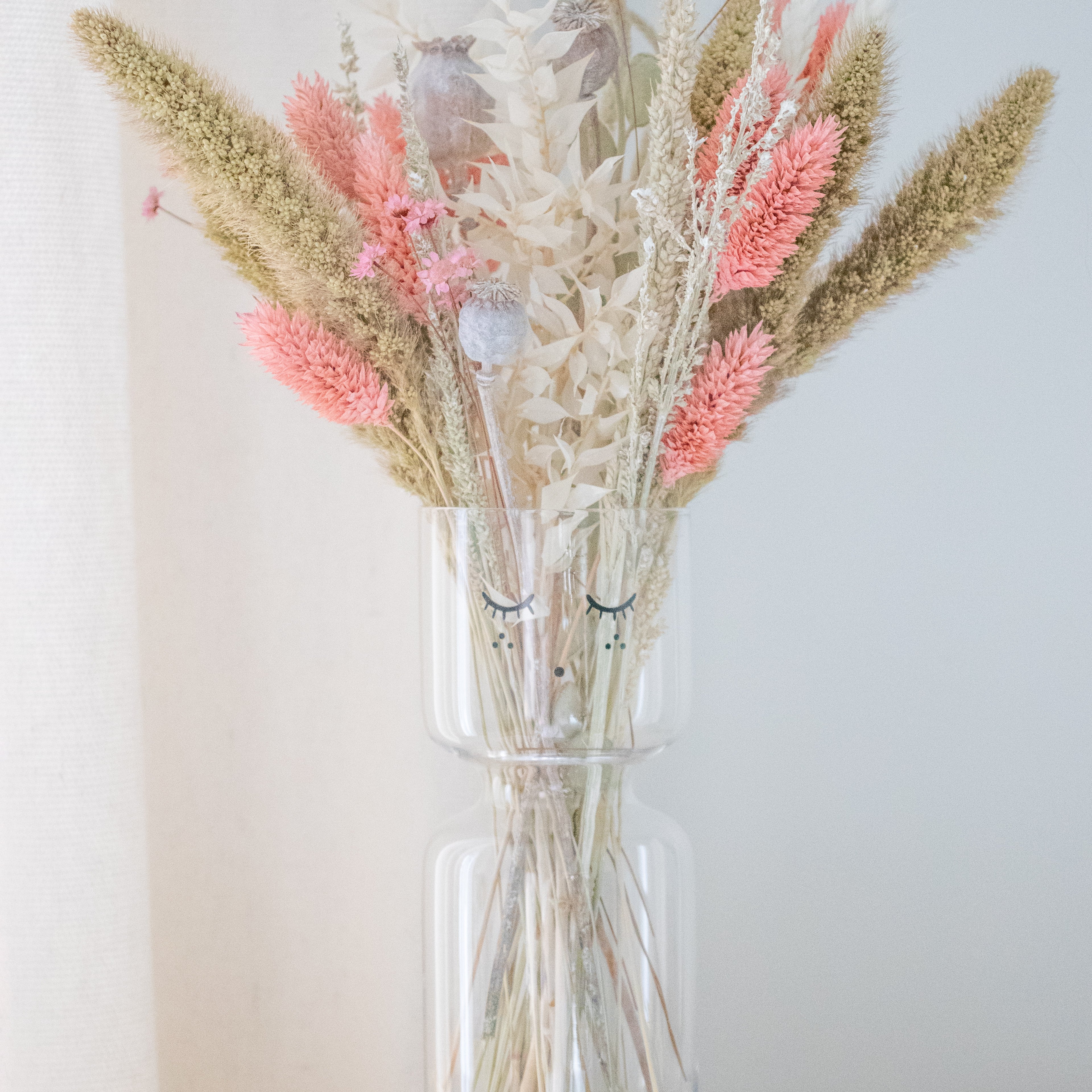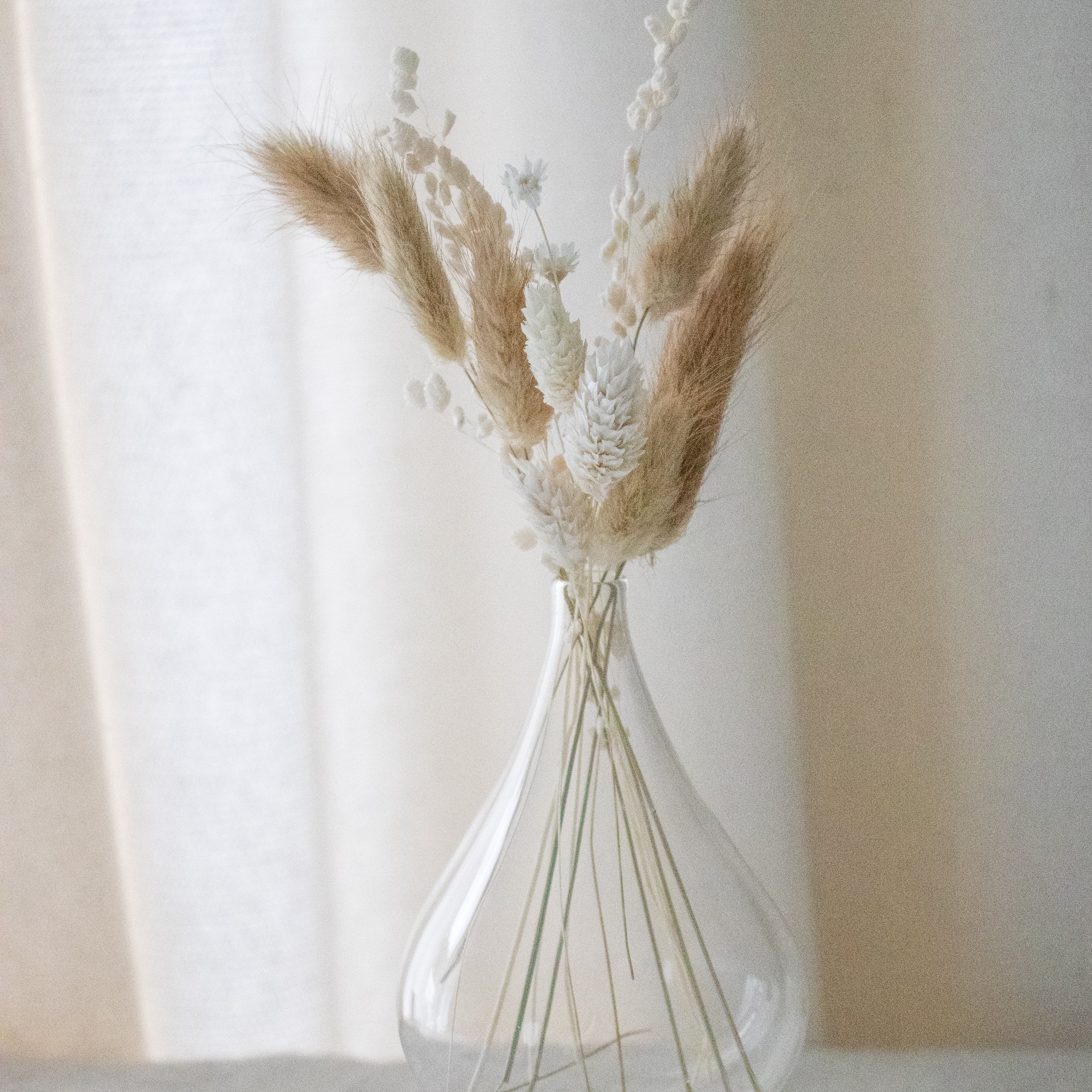 Kringloopgelukje – Transparant glazen vaasje met droogbloemenmix