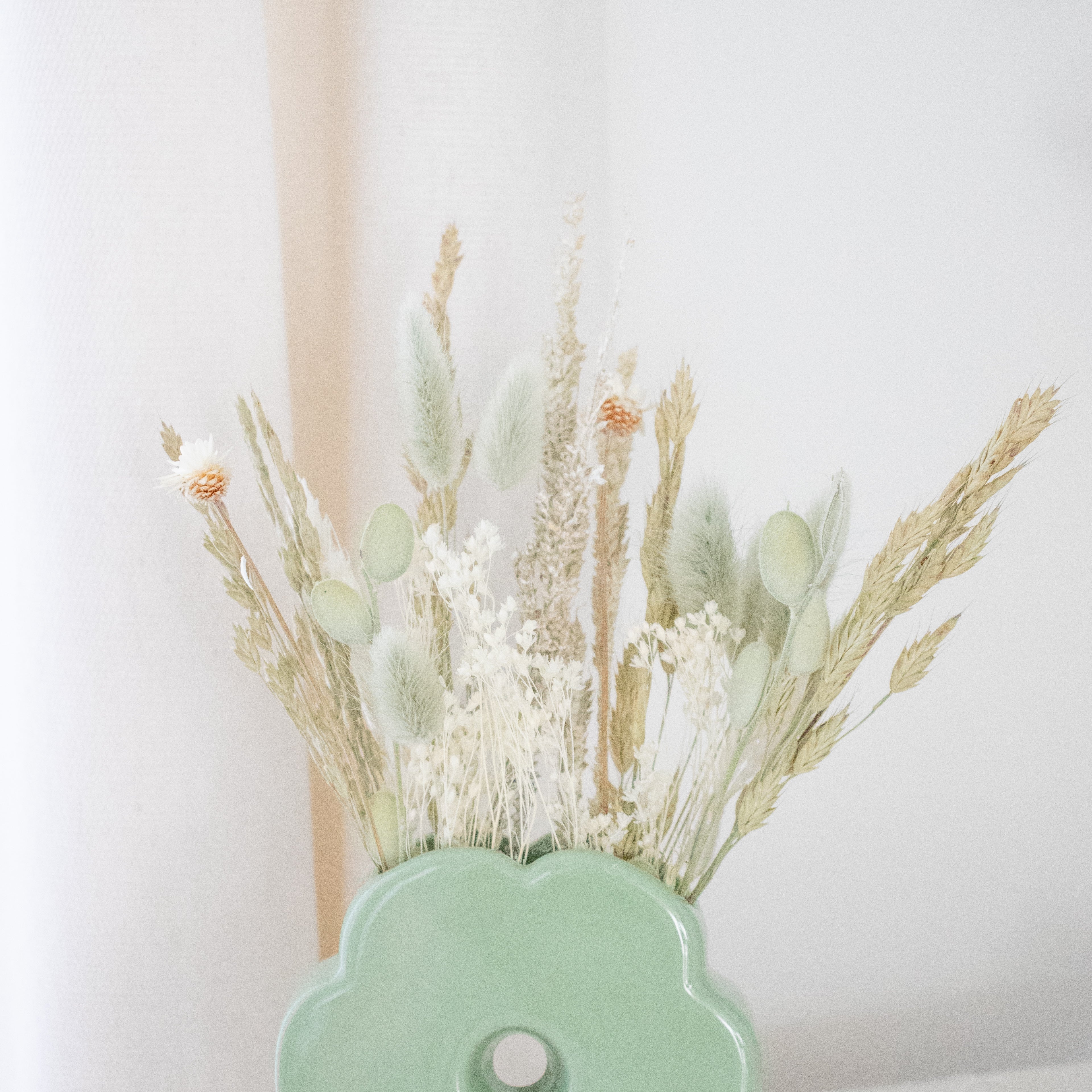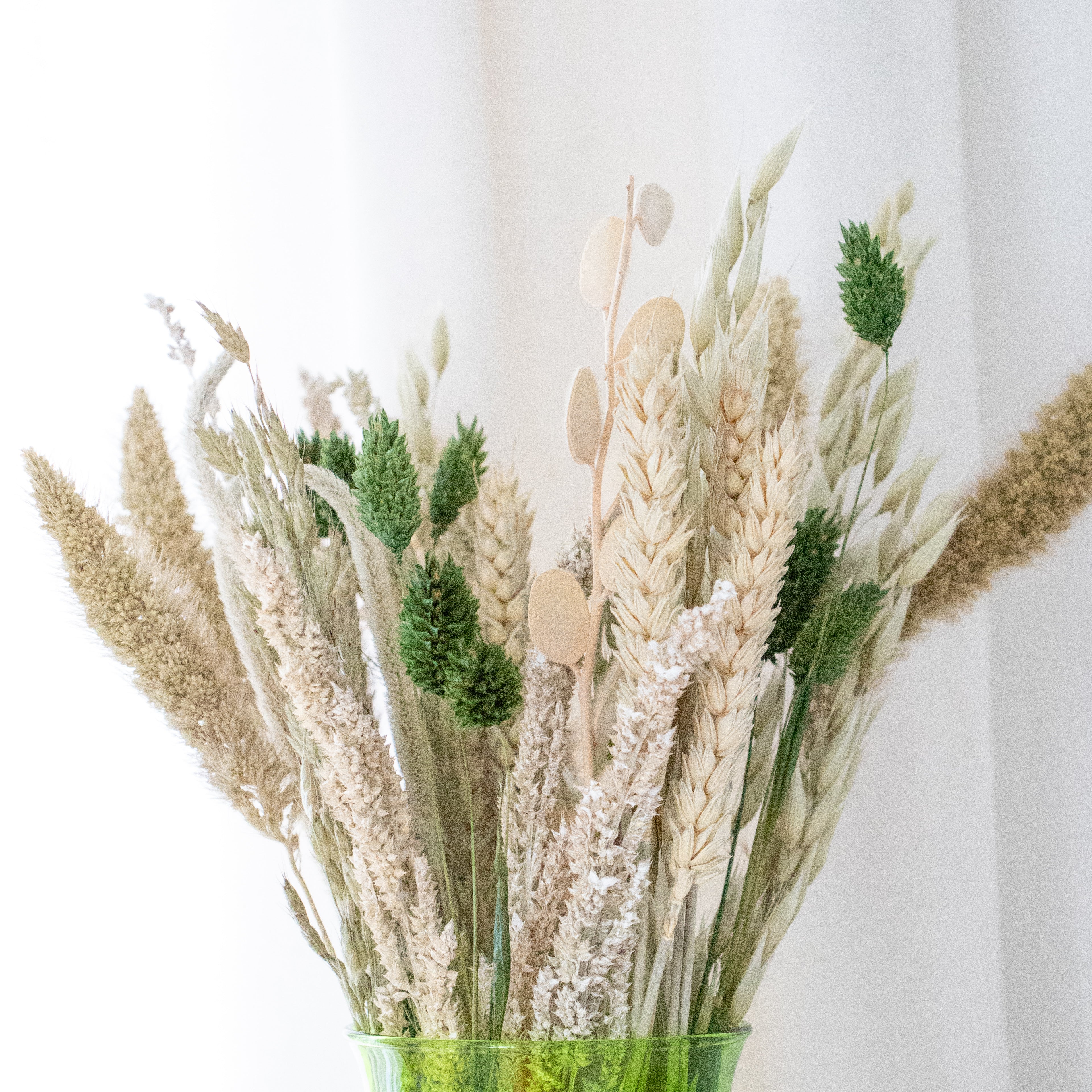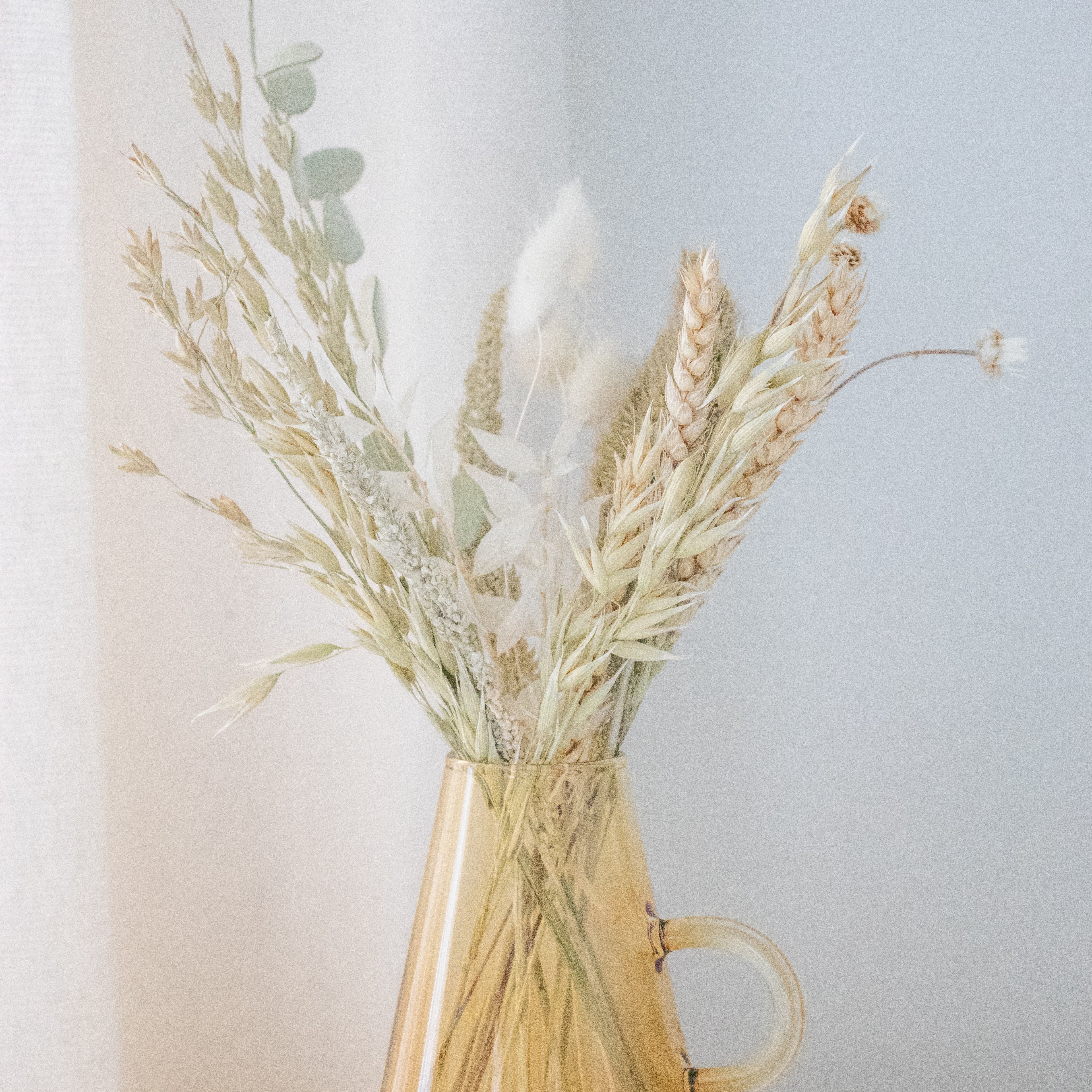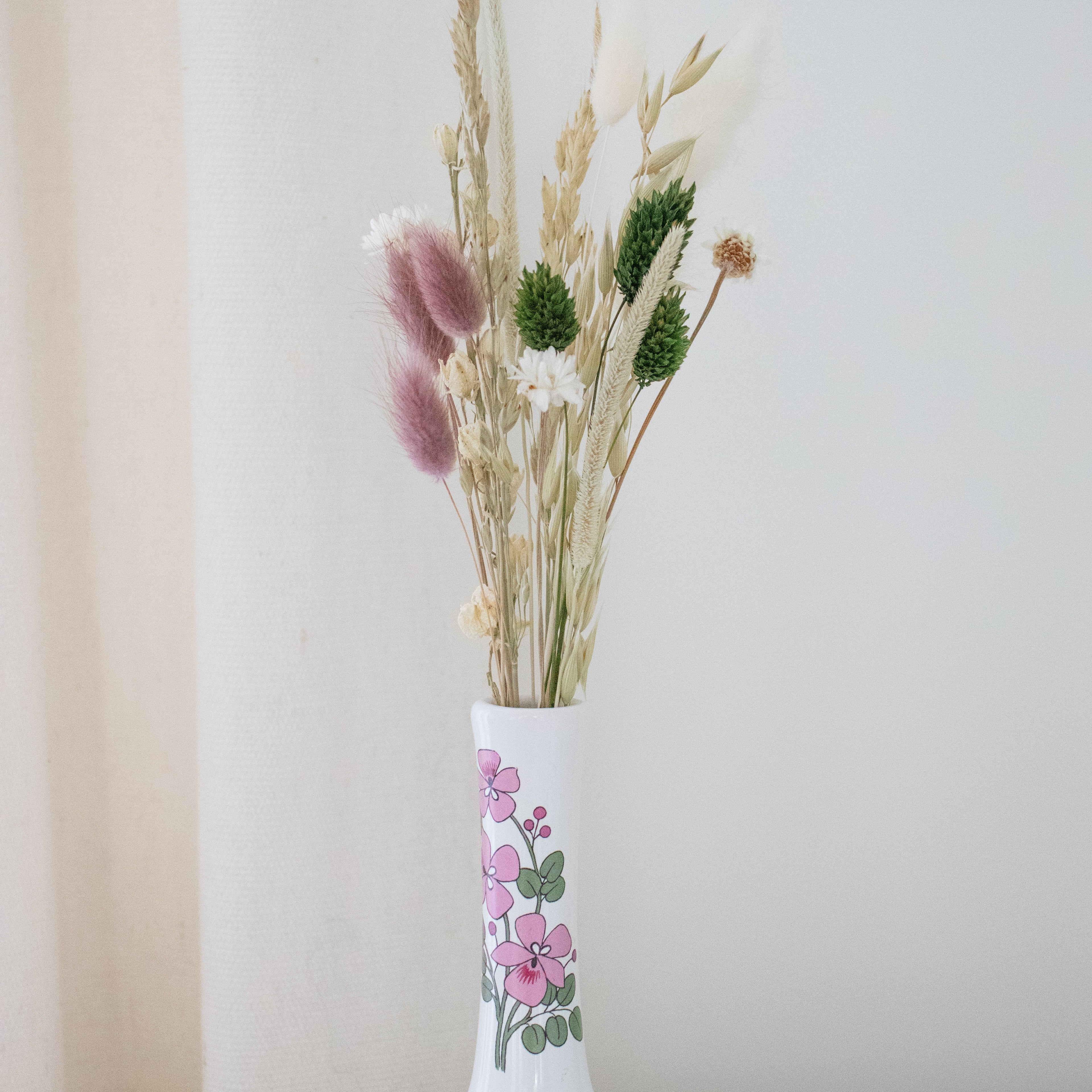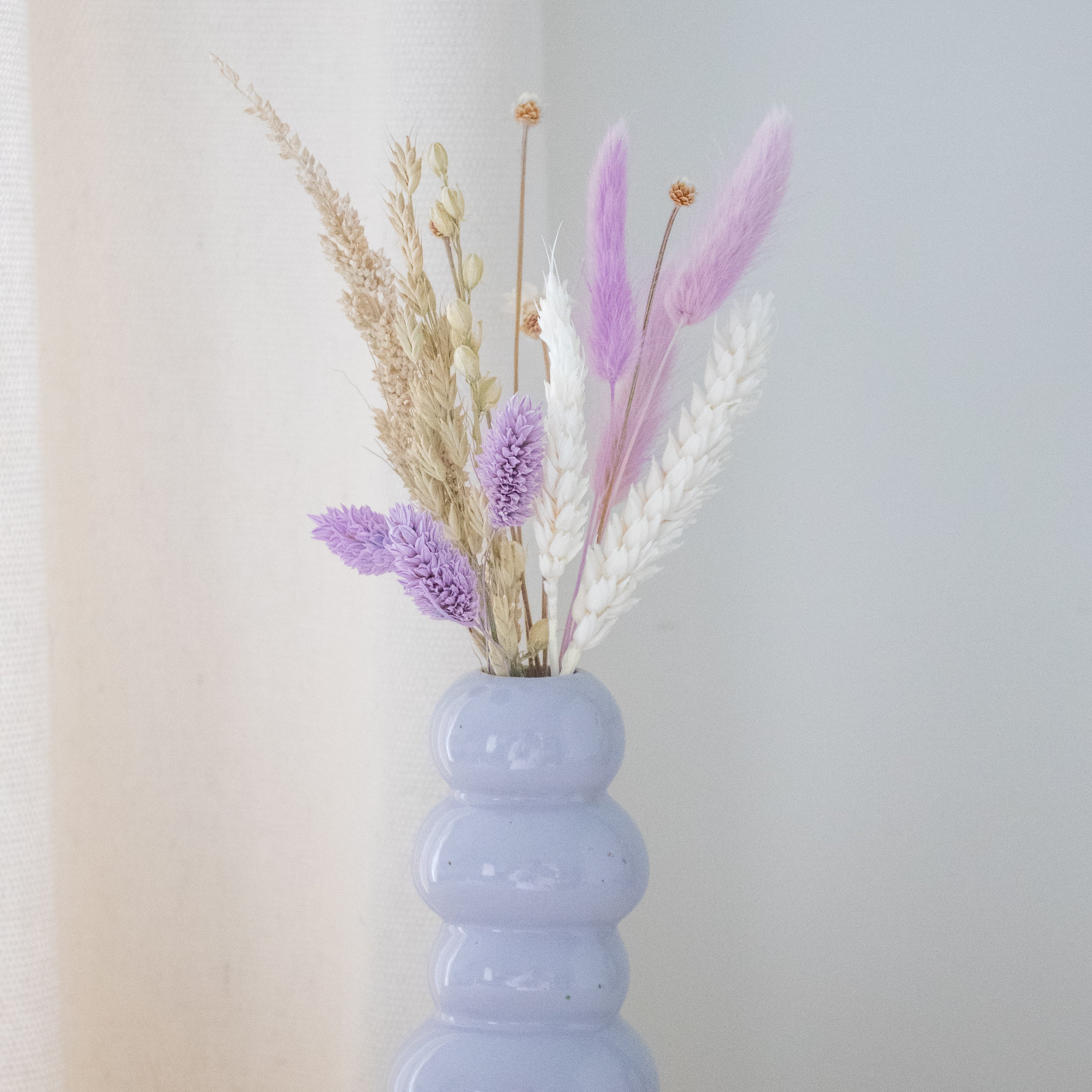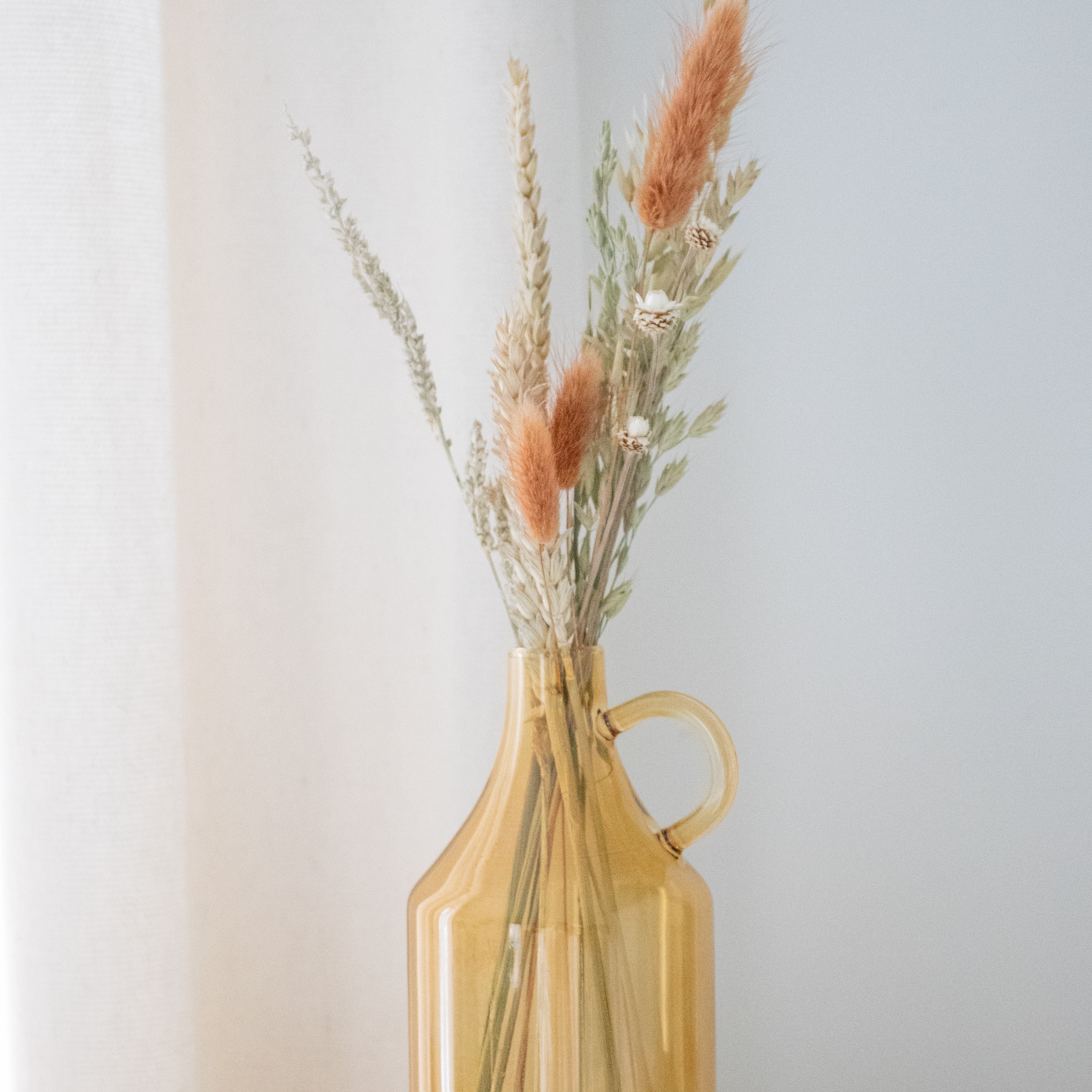 Kringloopgelukje – Transparant glazen vaasje met droogbloemenmix