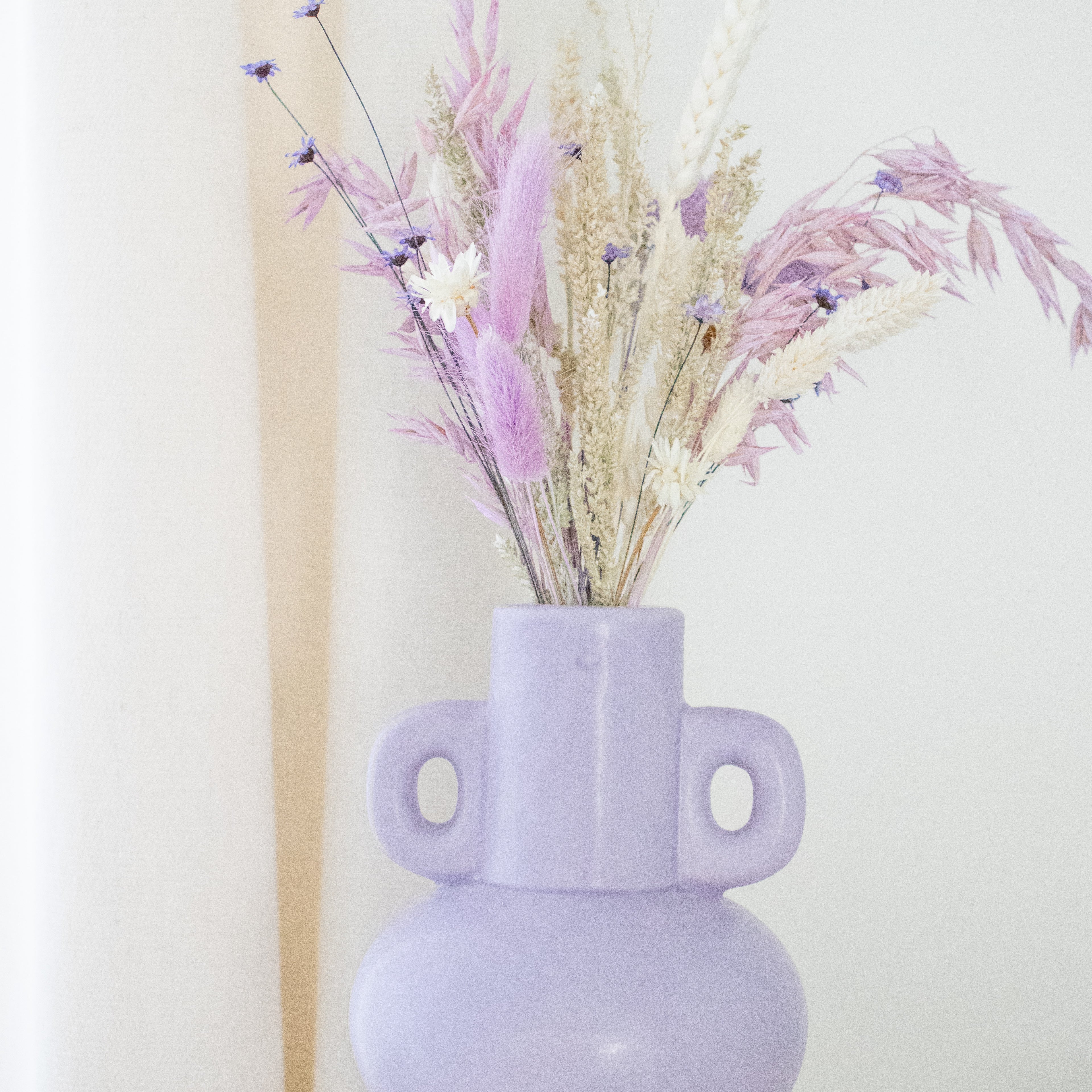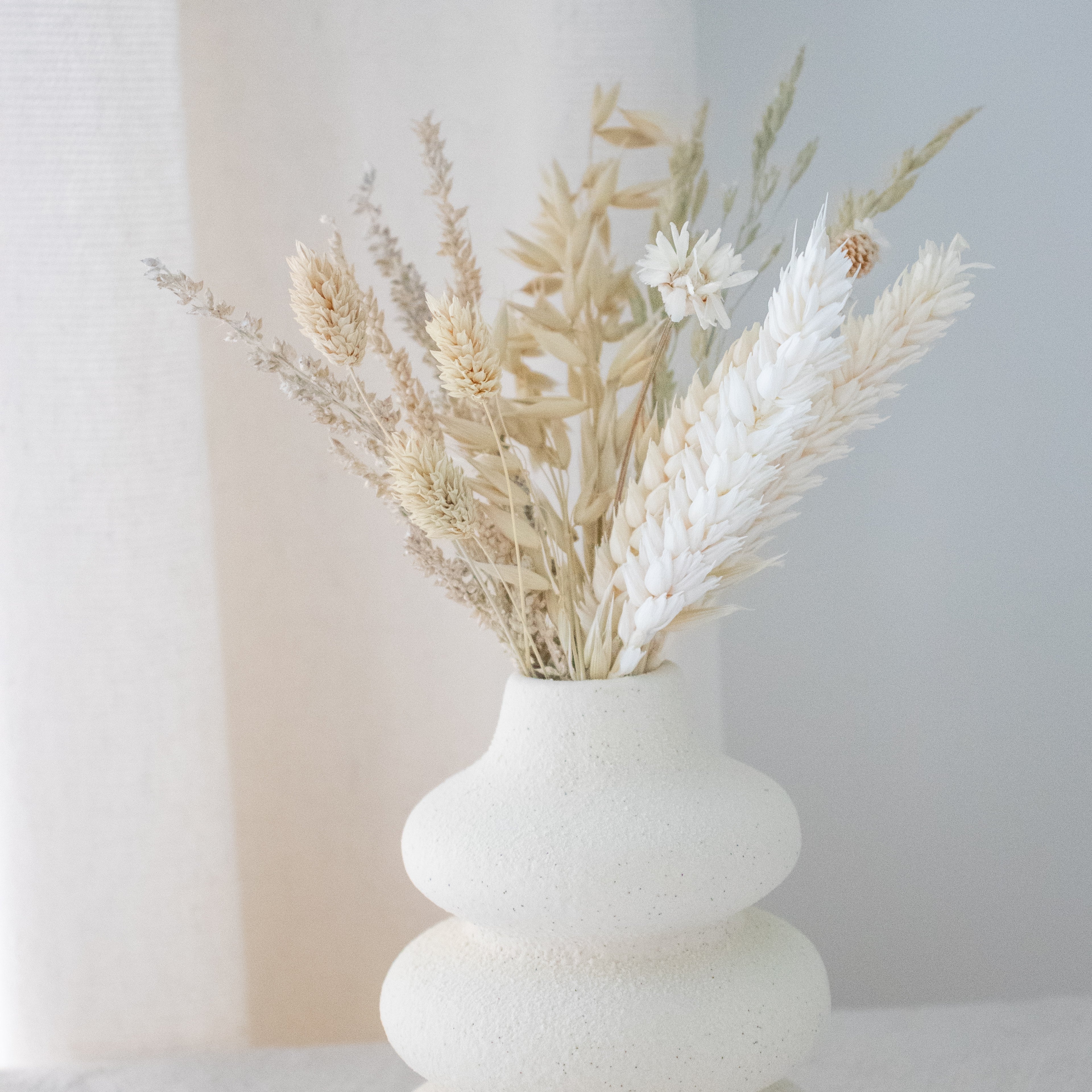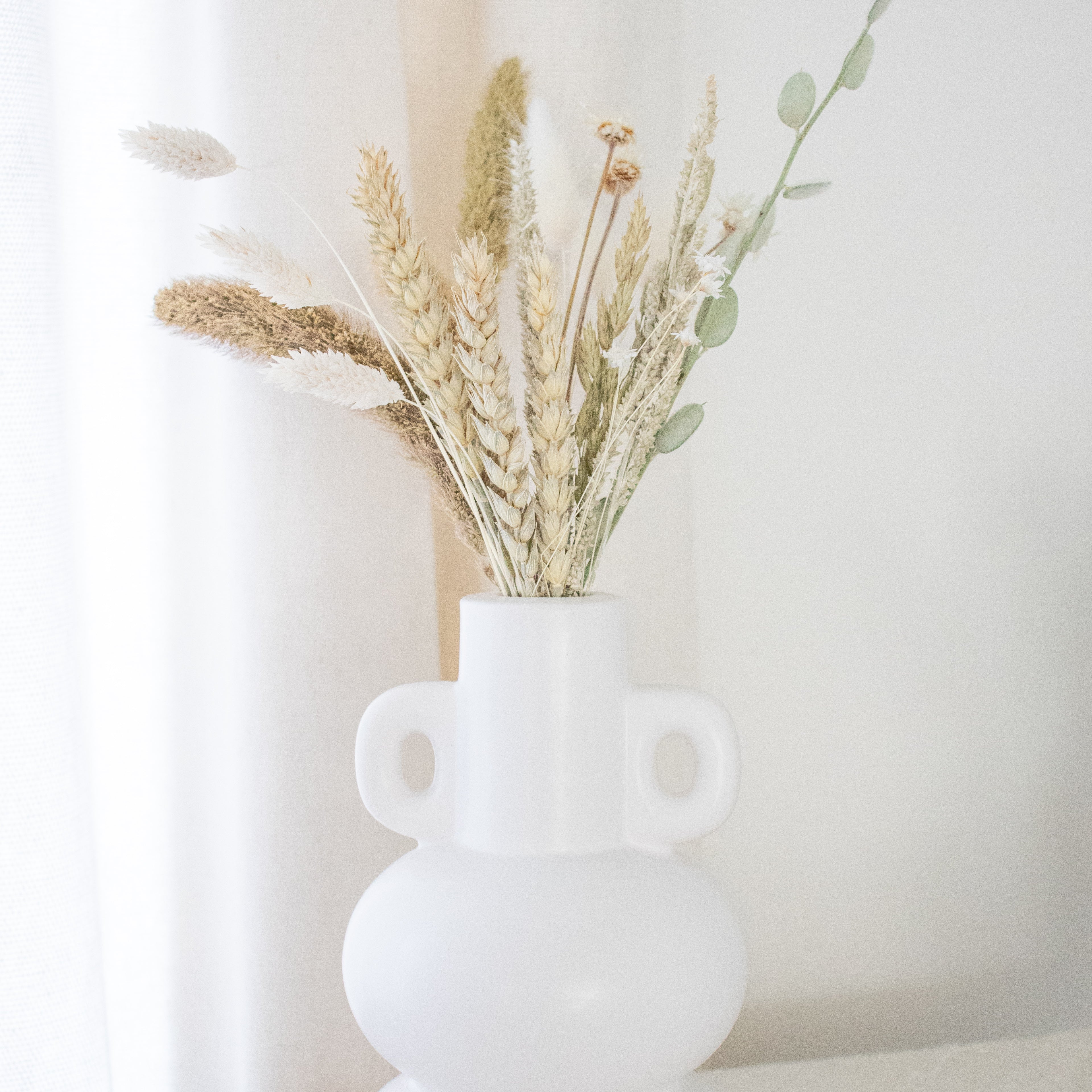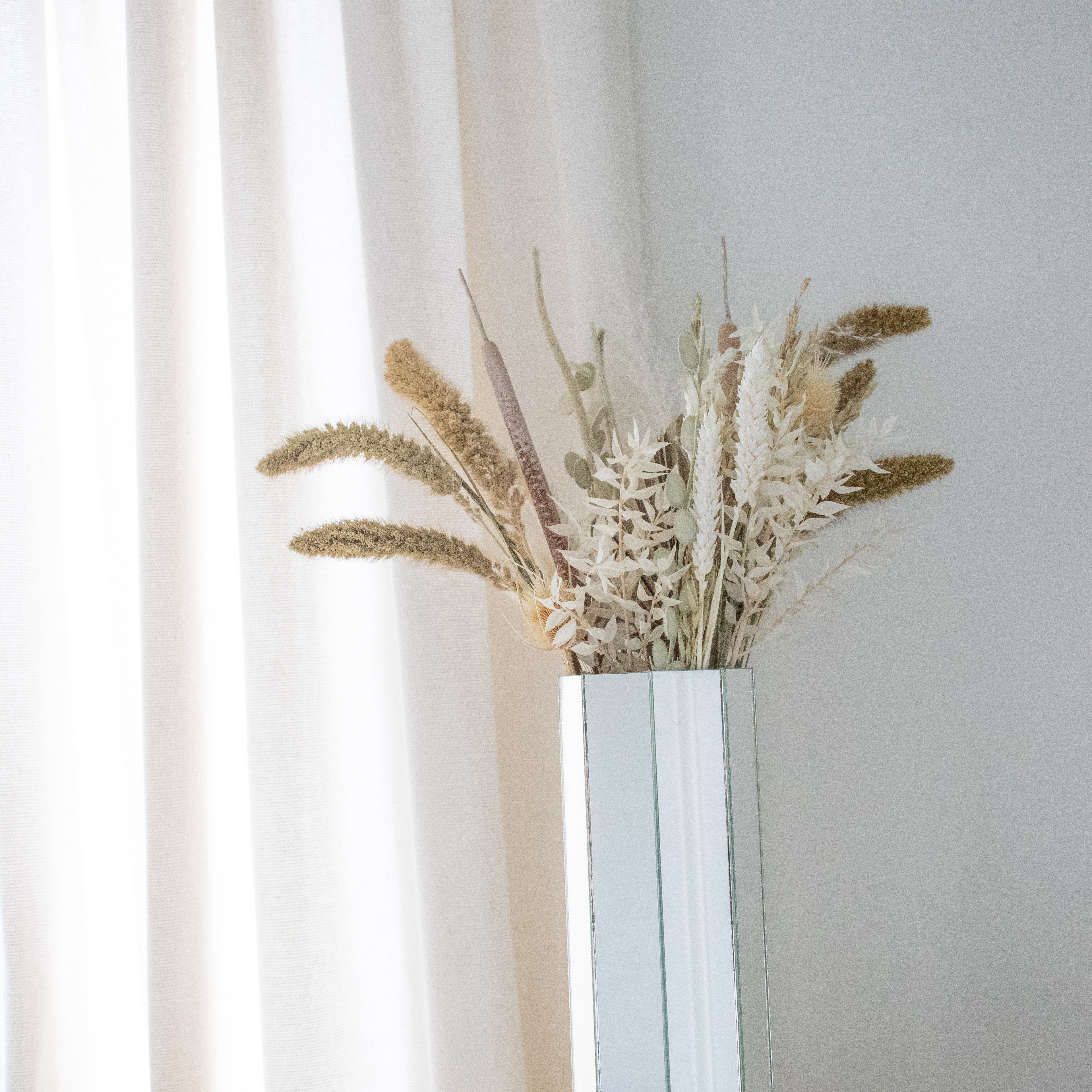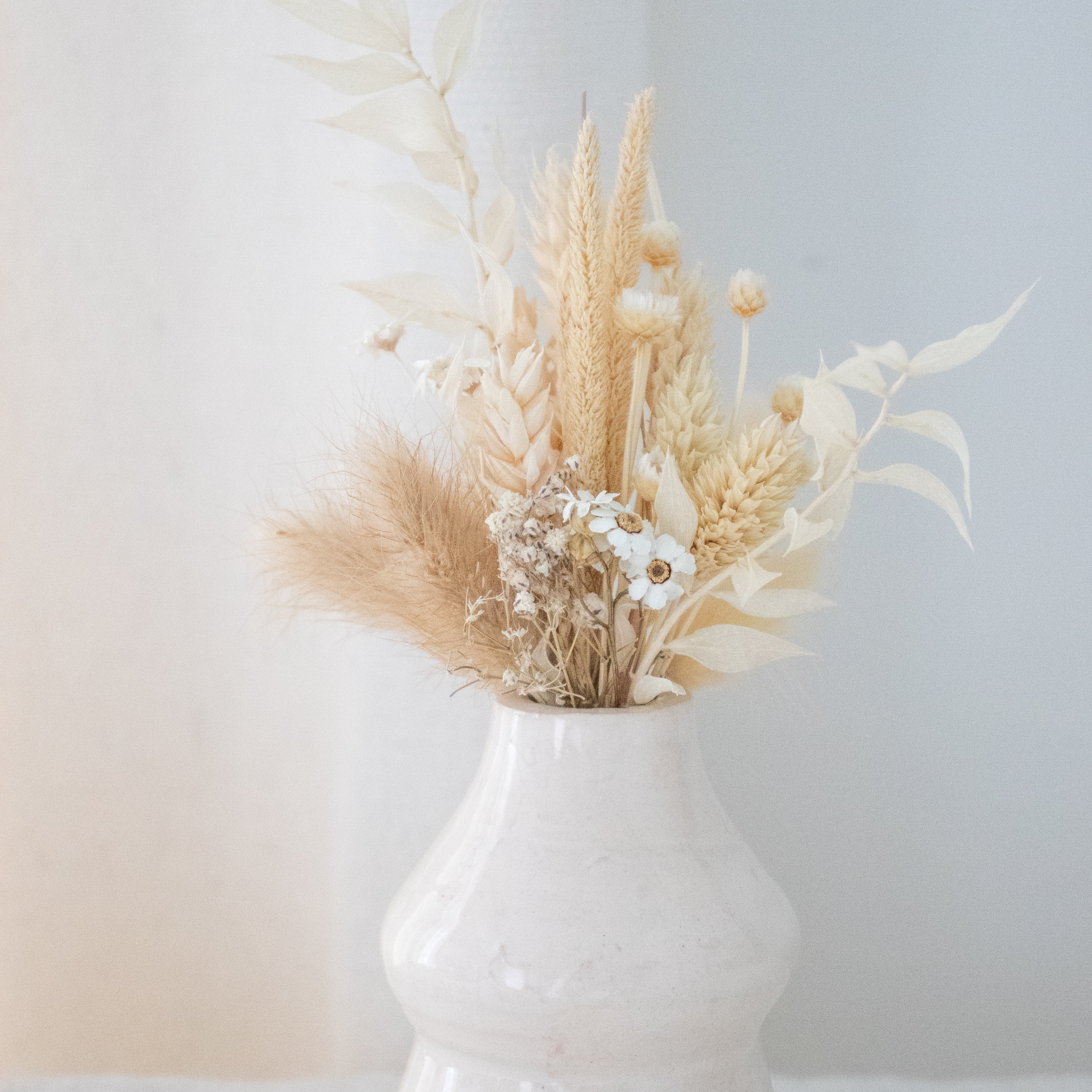 Kringloopgelukje – Transparant glazen vaasje met droogbloemenmix