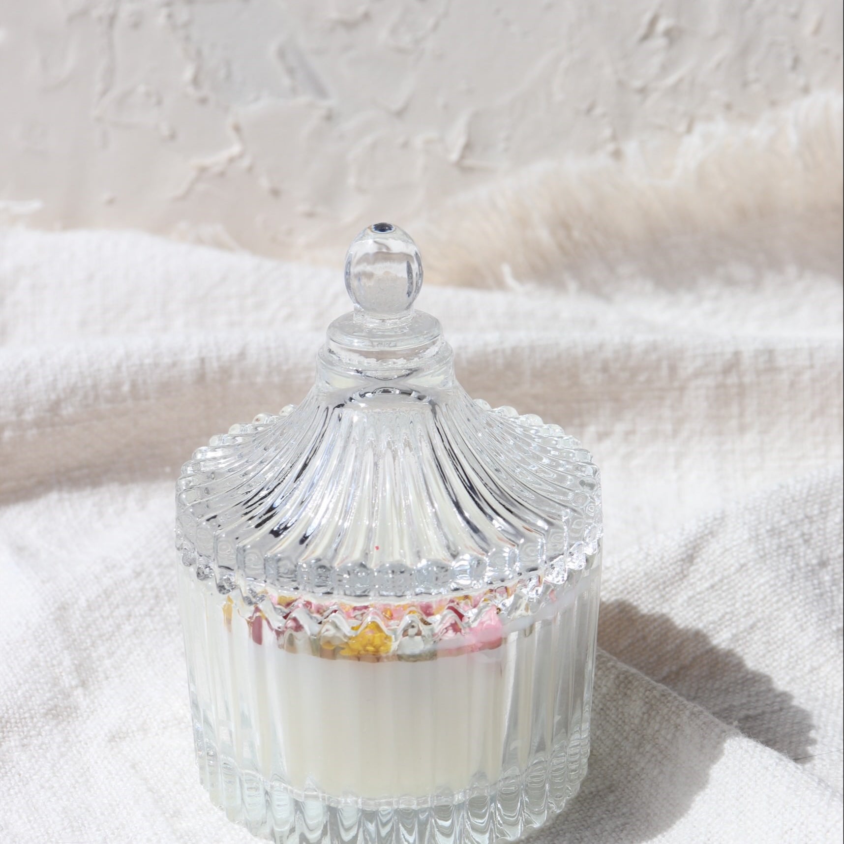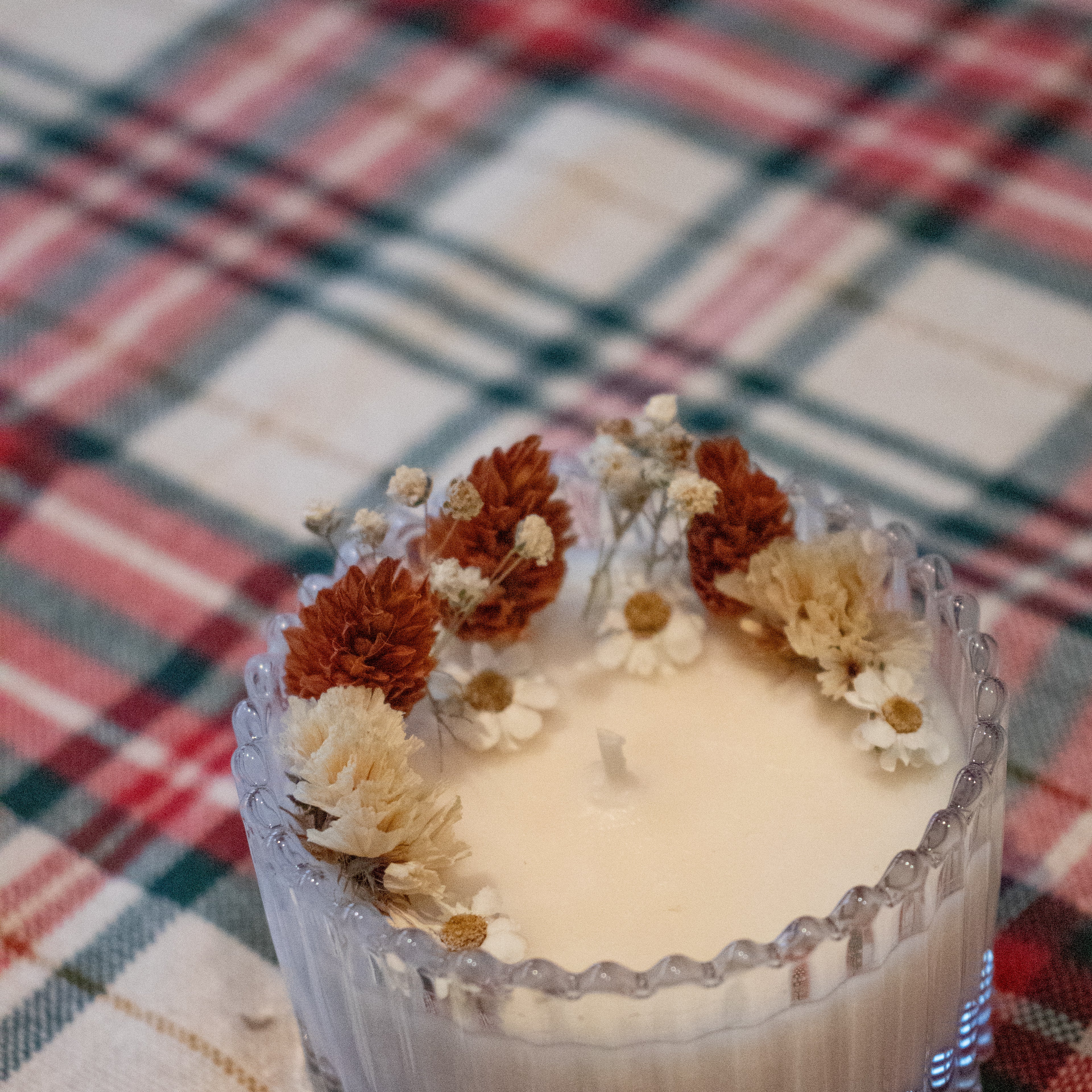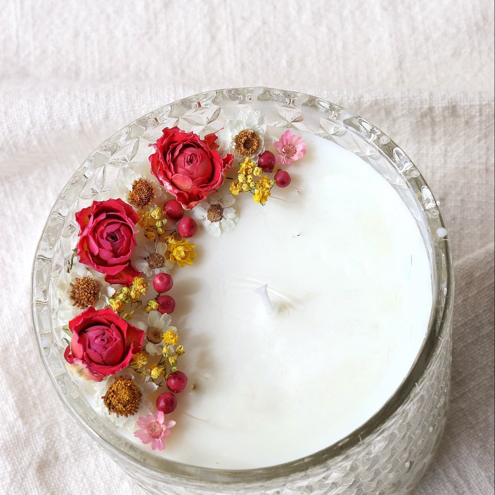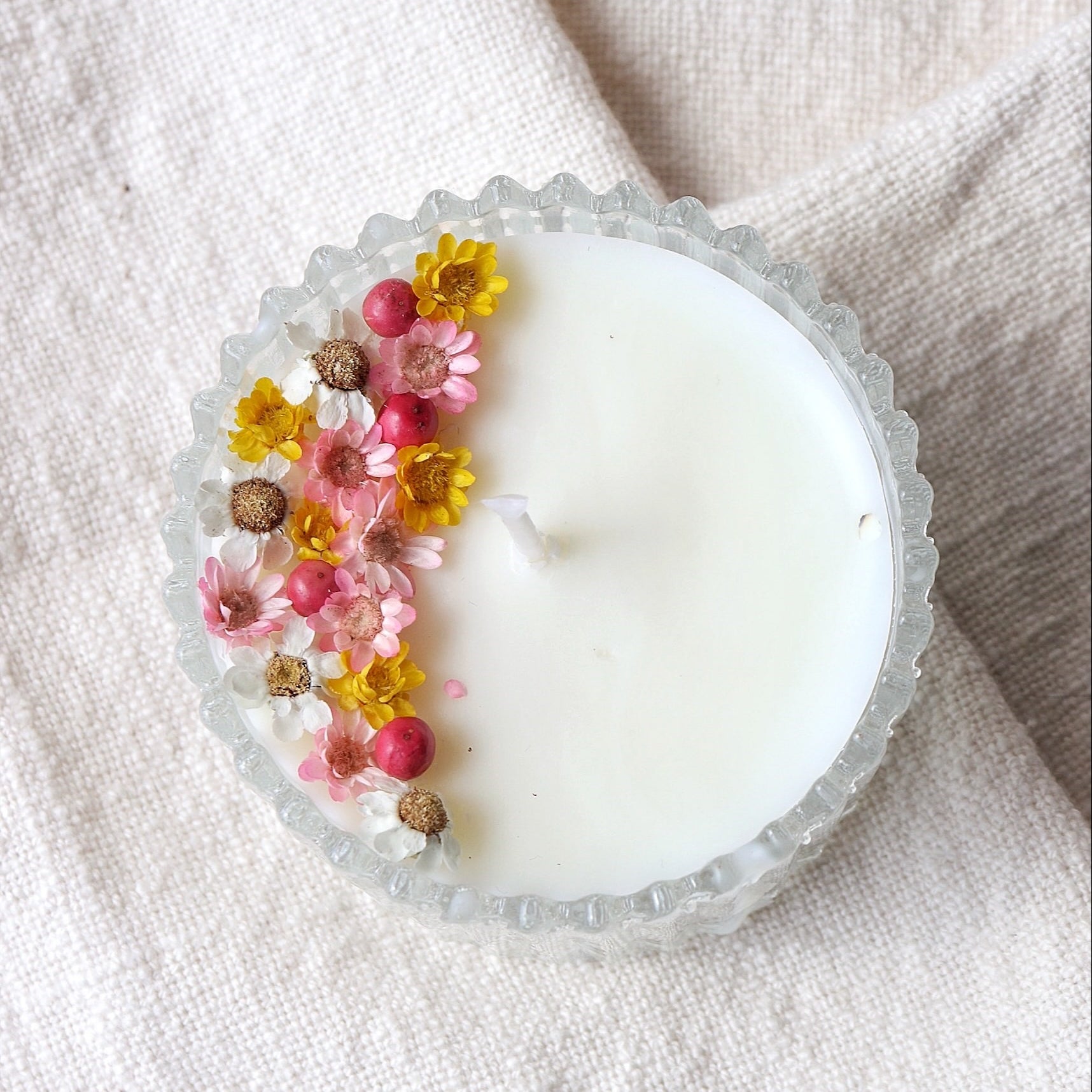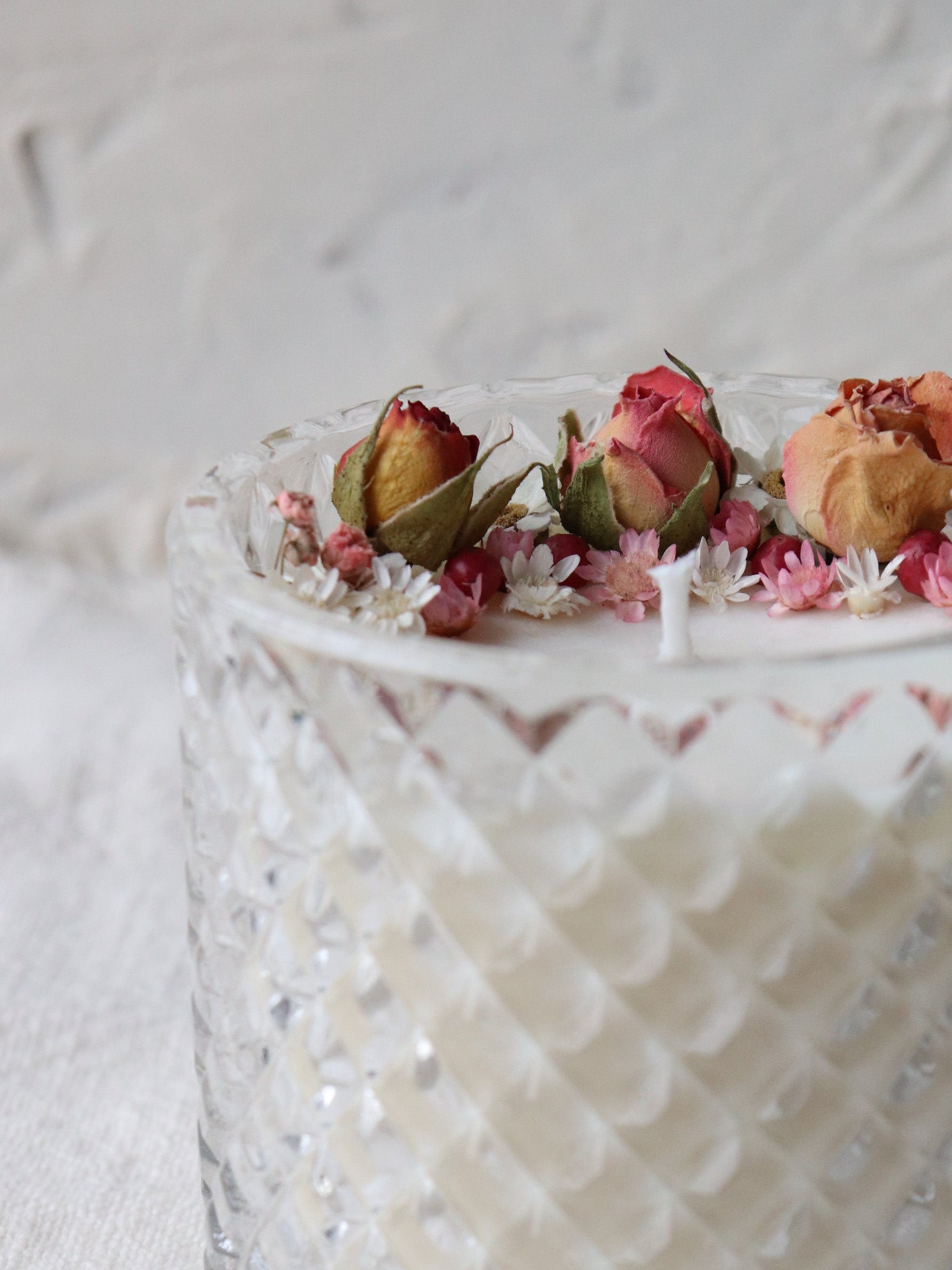 Kringloopgelukje – Transparant glazen vaasje met droogbloemenmix