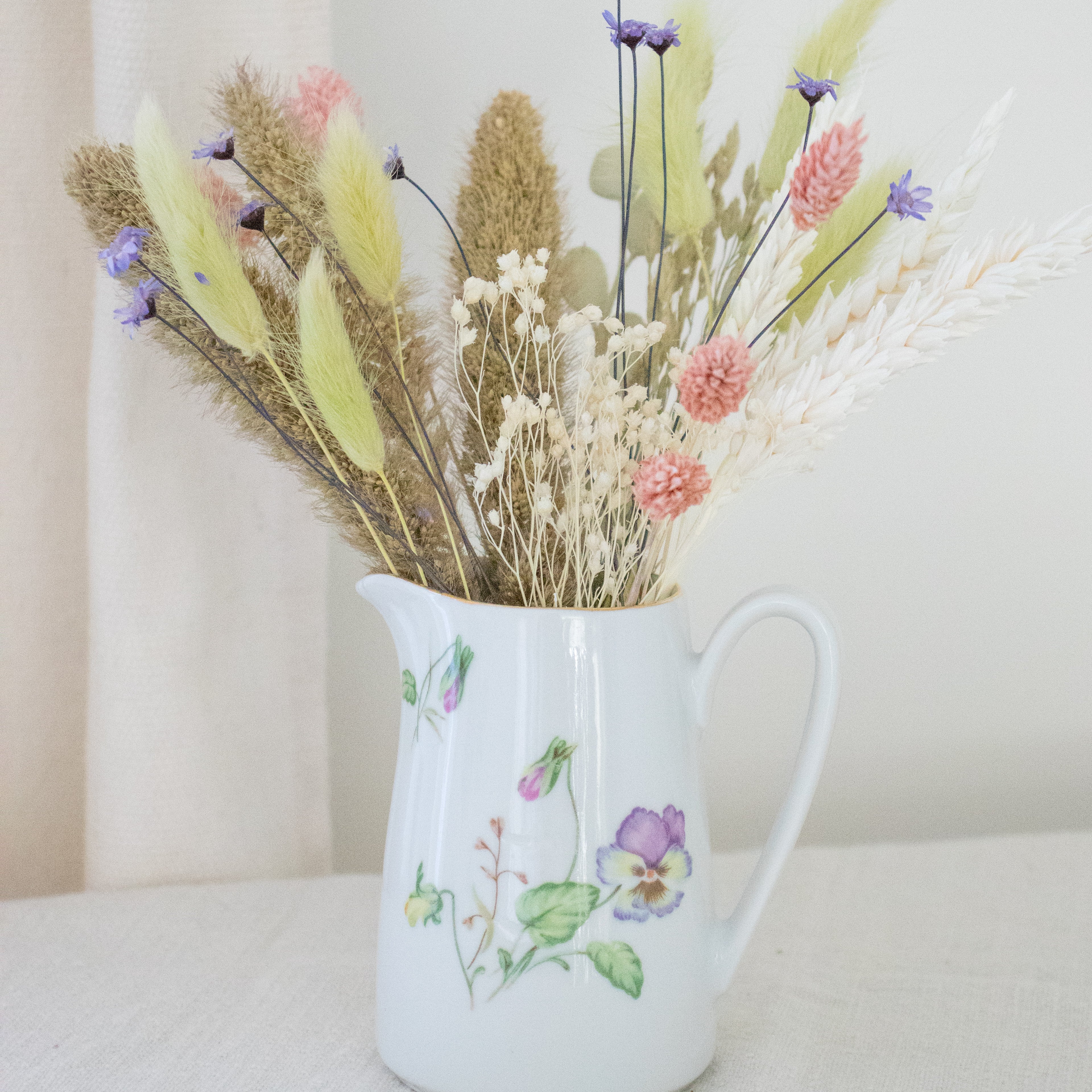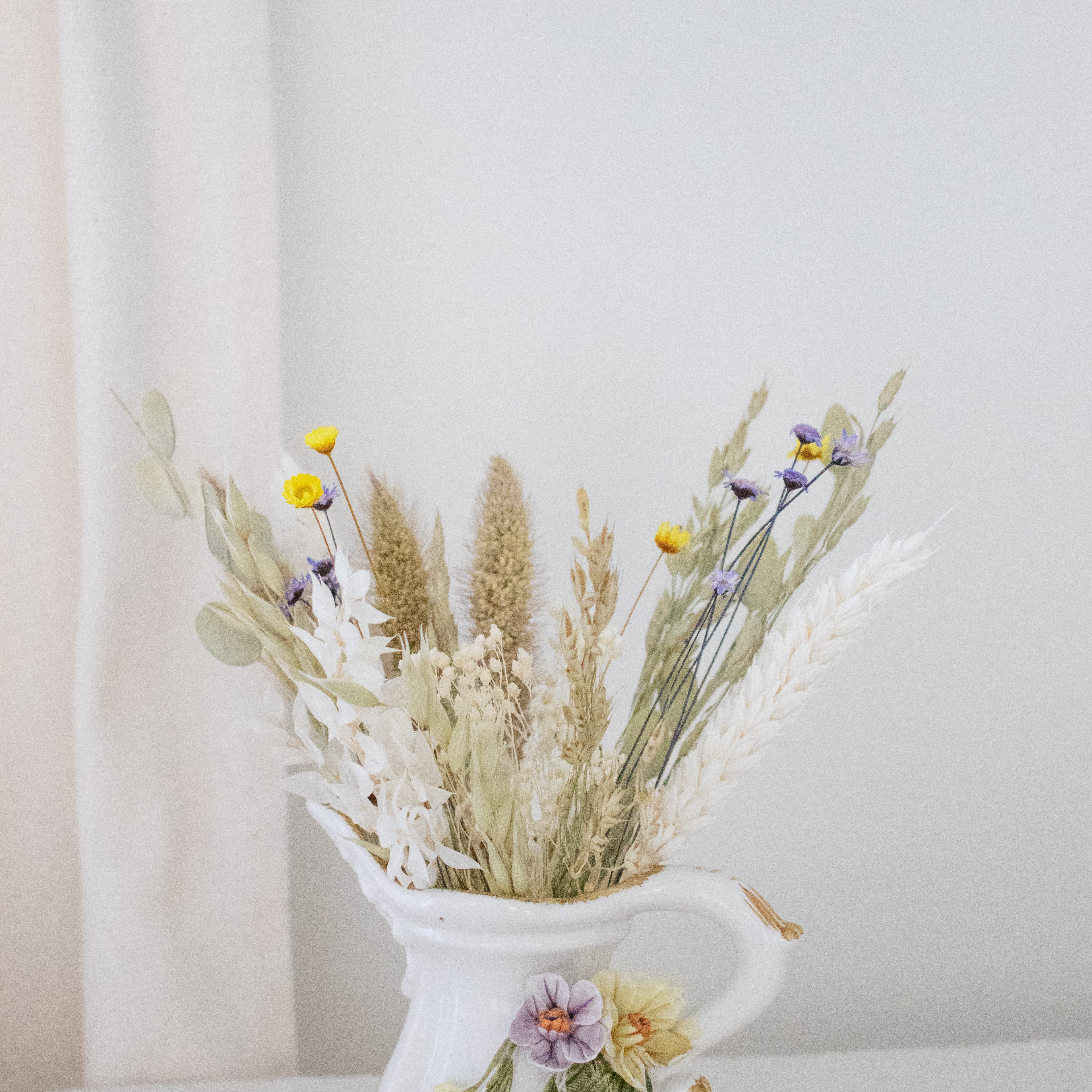 Kringloopgelukje – Bloemenkan met kleurrijke droogbloemen