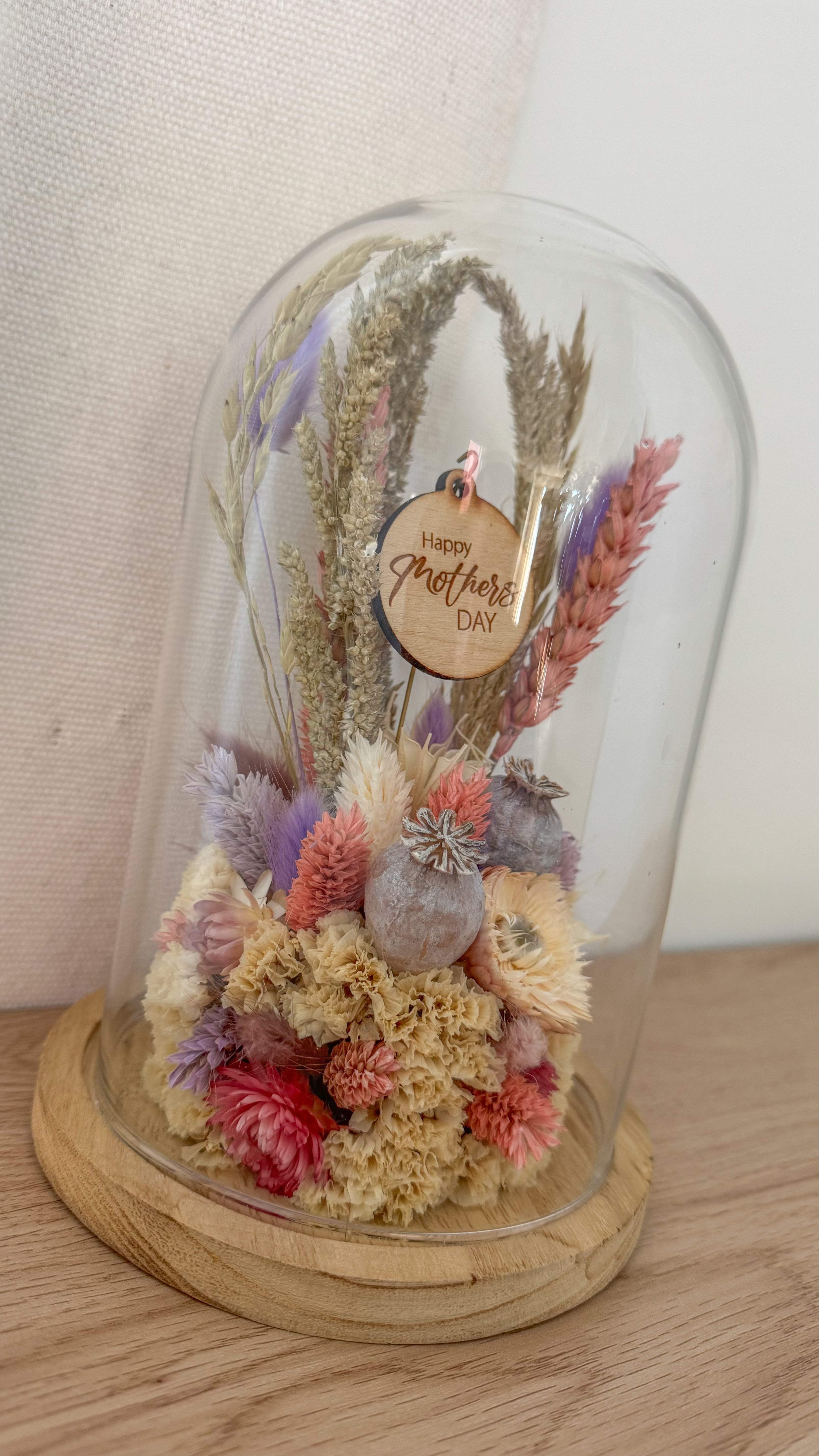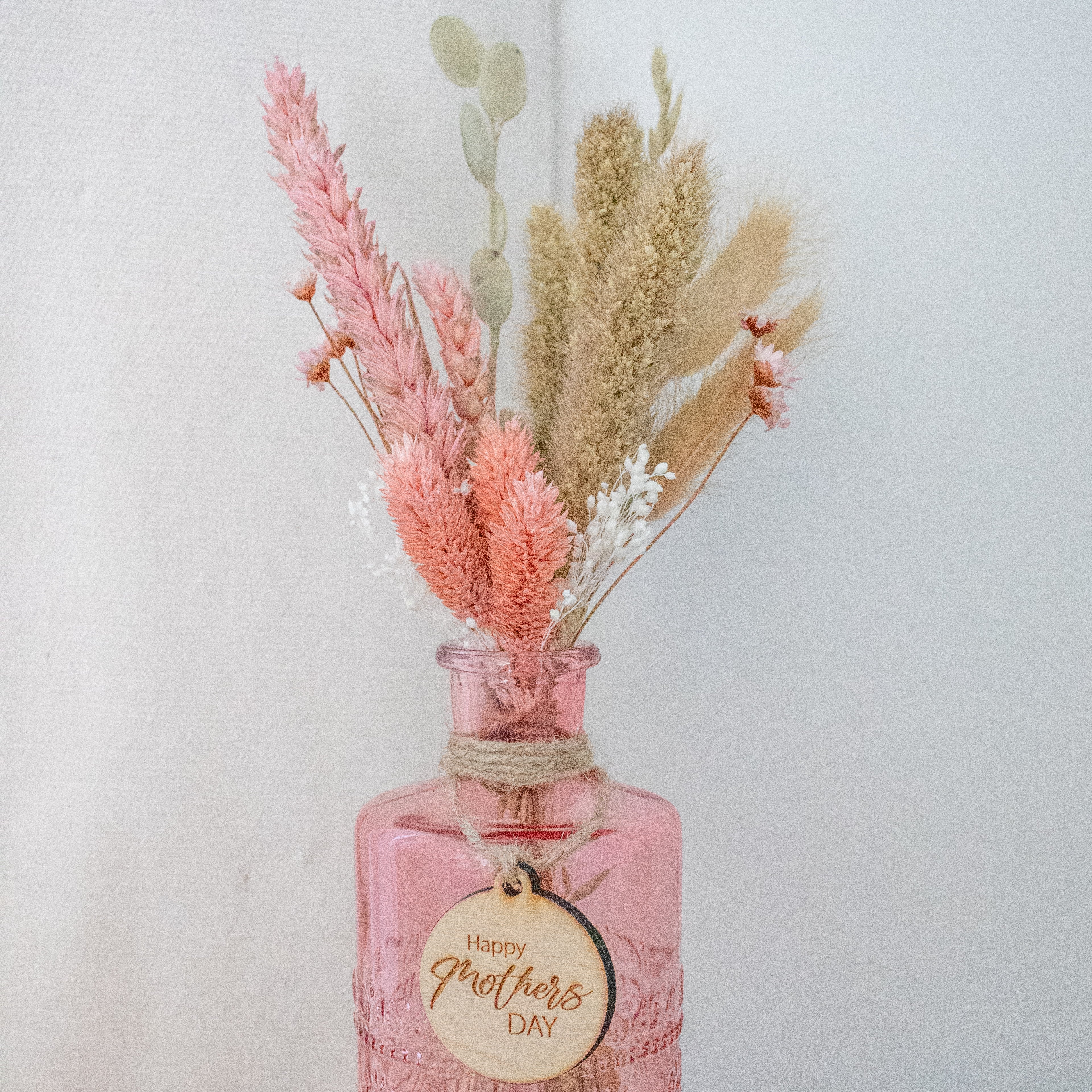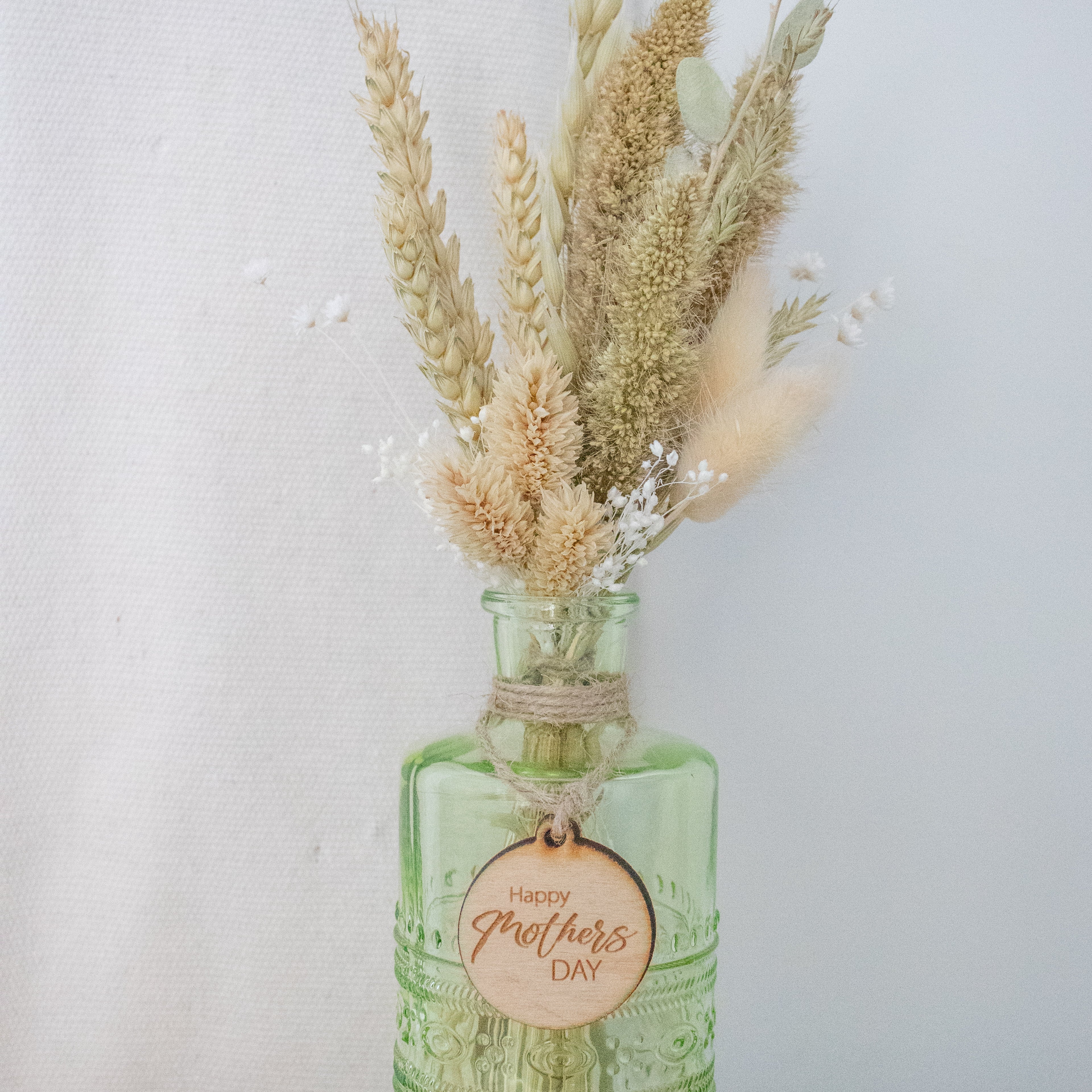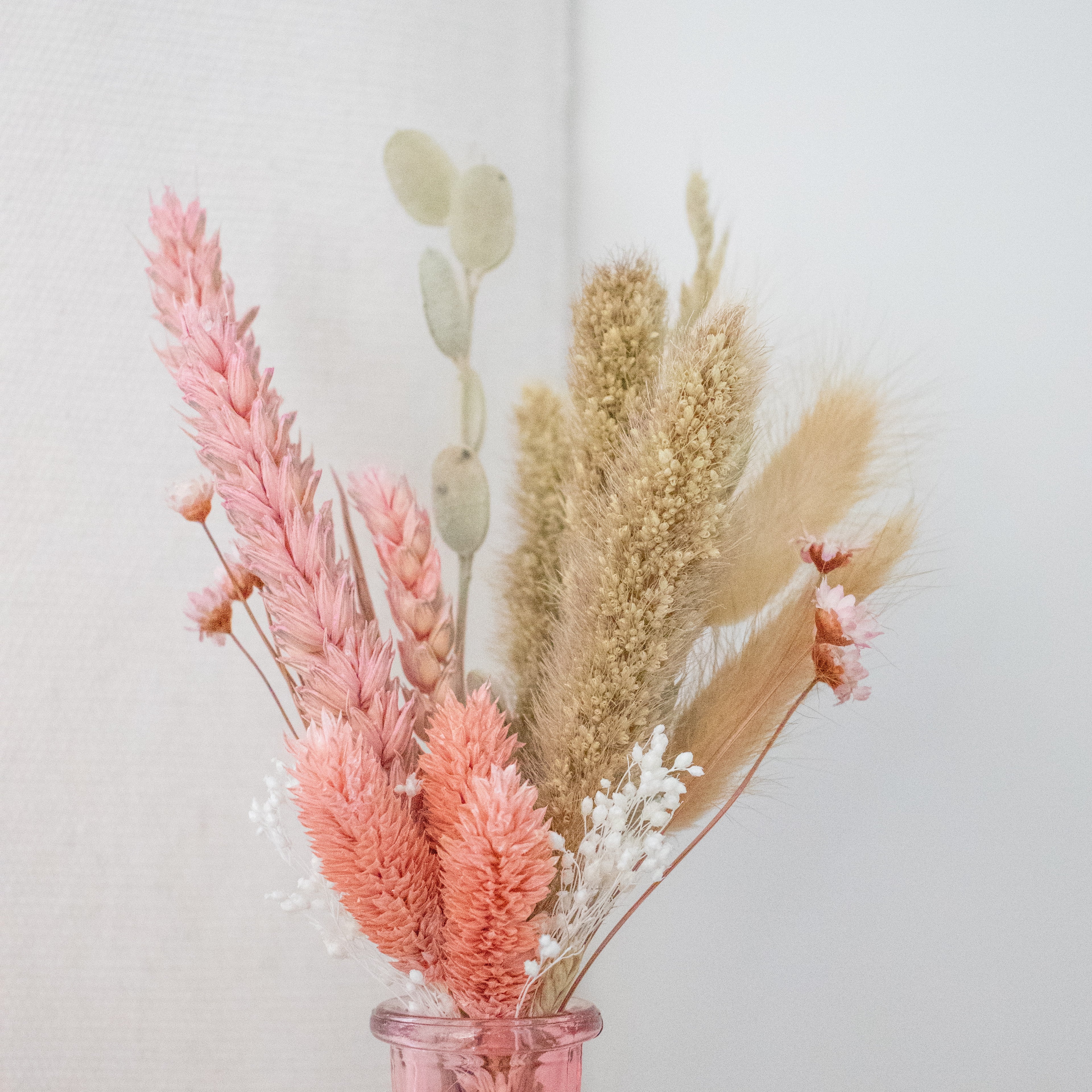 Kringloopgelukje – Transparant glazen vaasje met droogbloemenmix