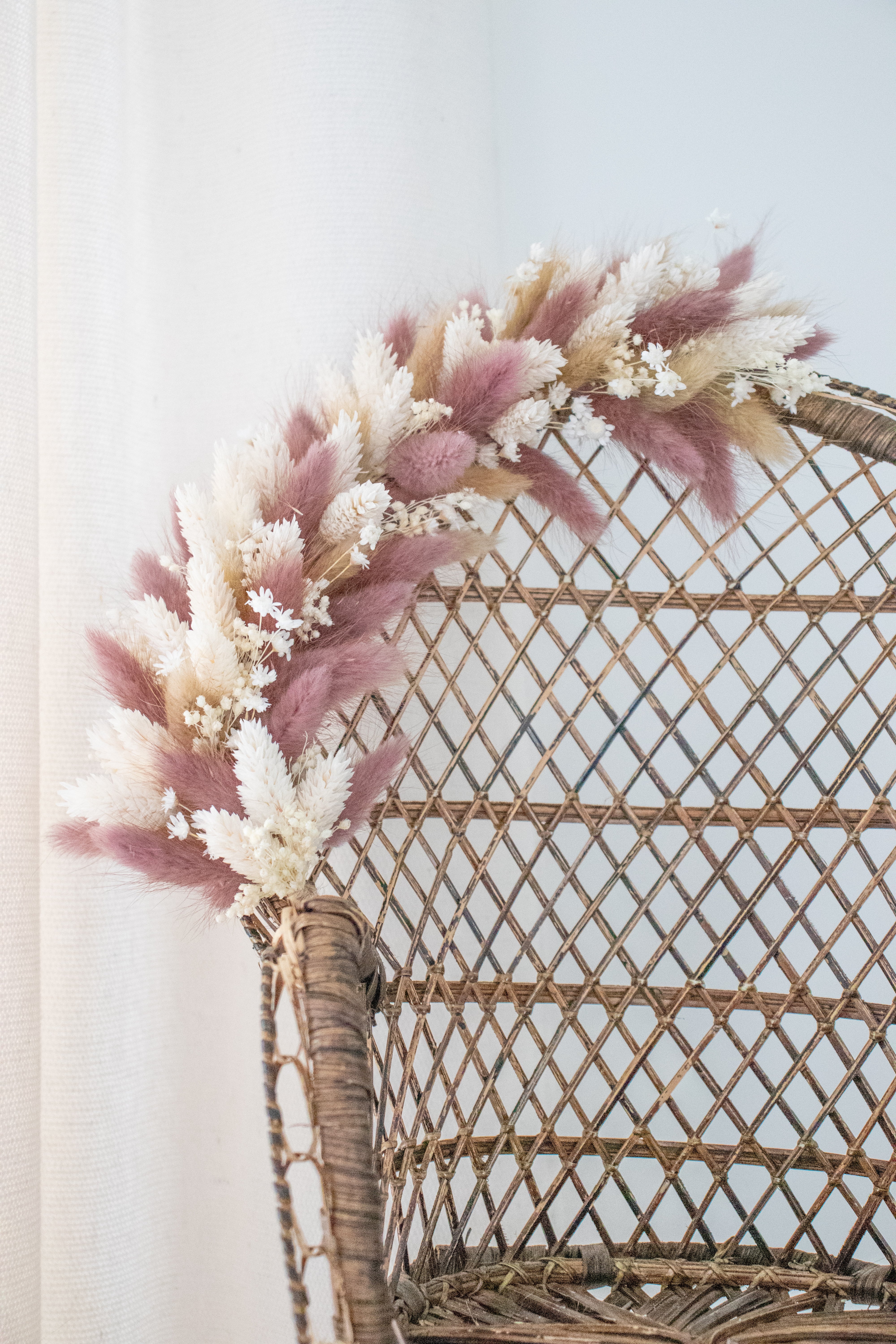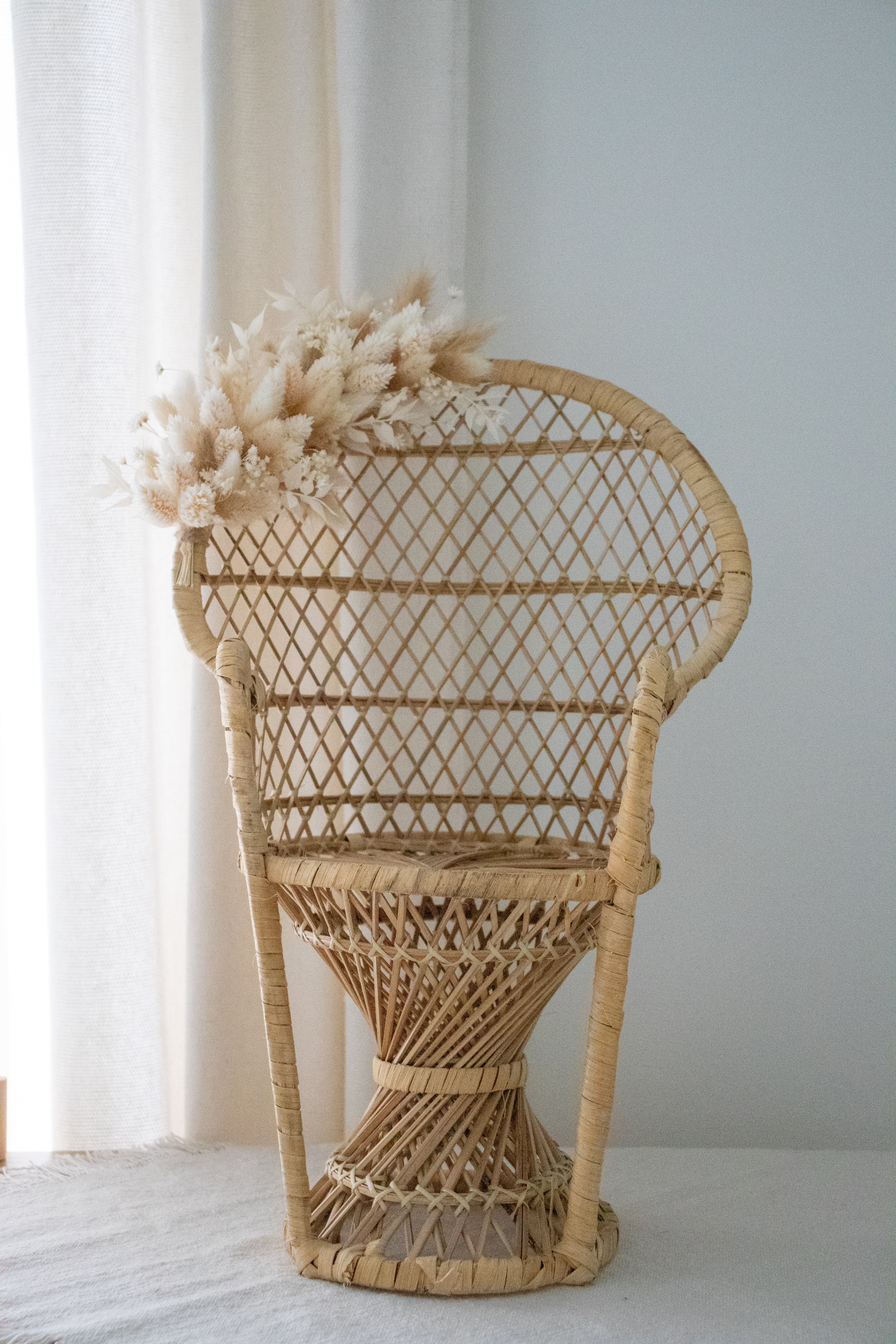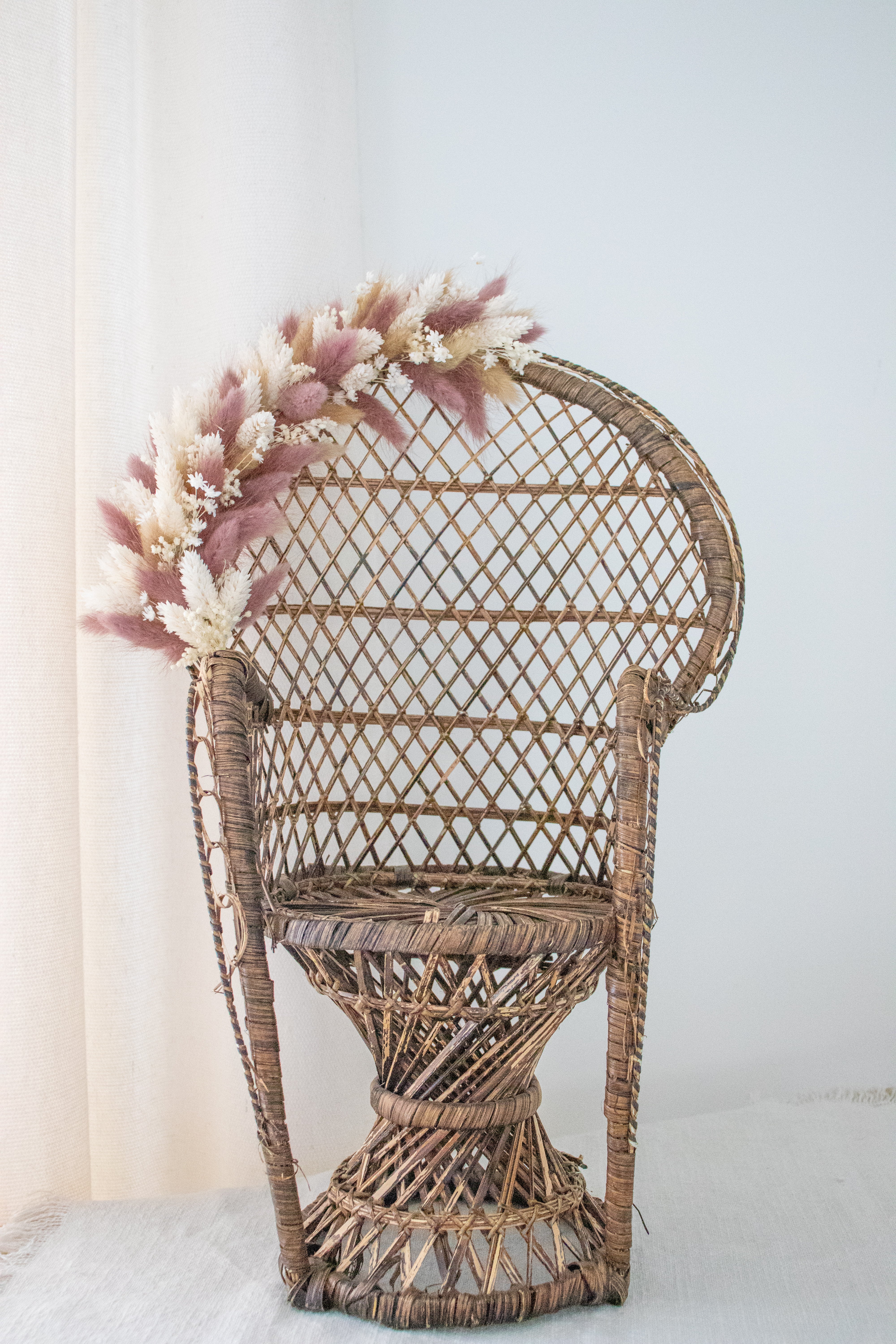 Rotan mini-stoeltje met droogbloemkrans