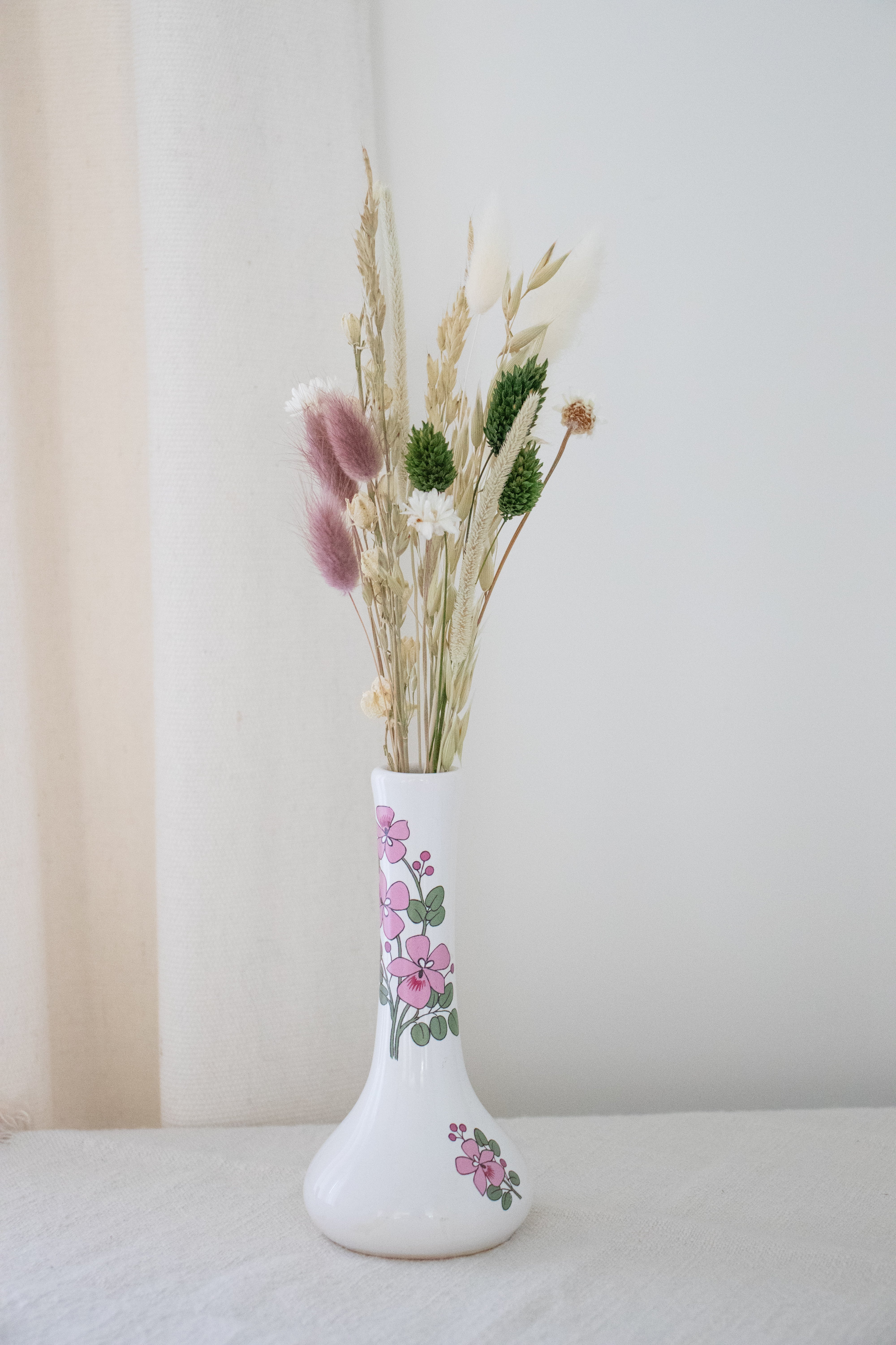 Roos vaasje met droogbloemen