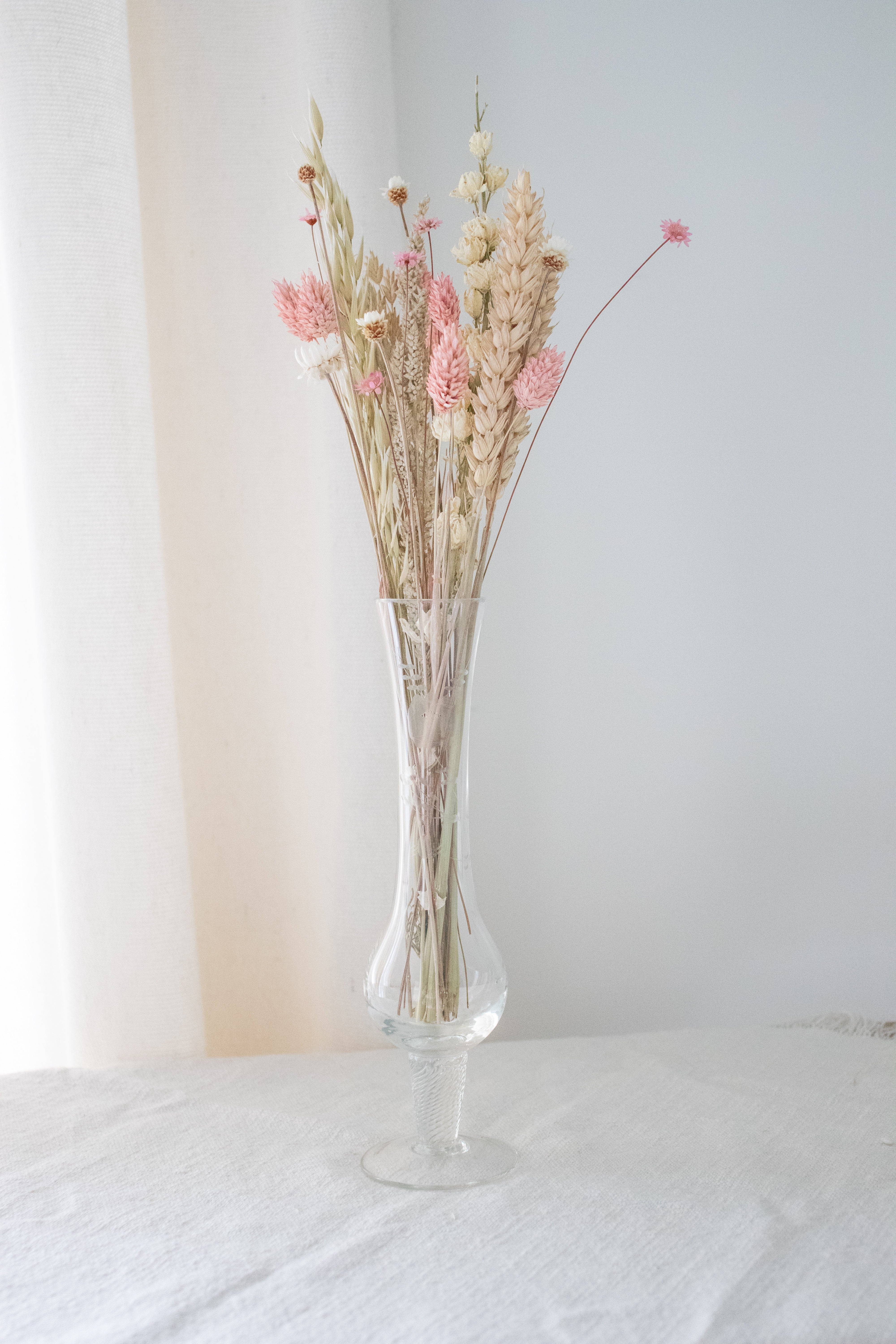 Romantisch roze droogbloemenvaasje