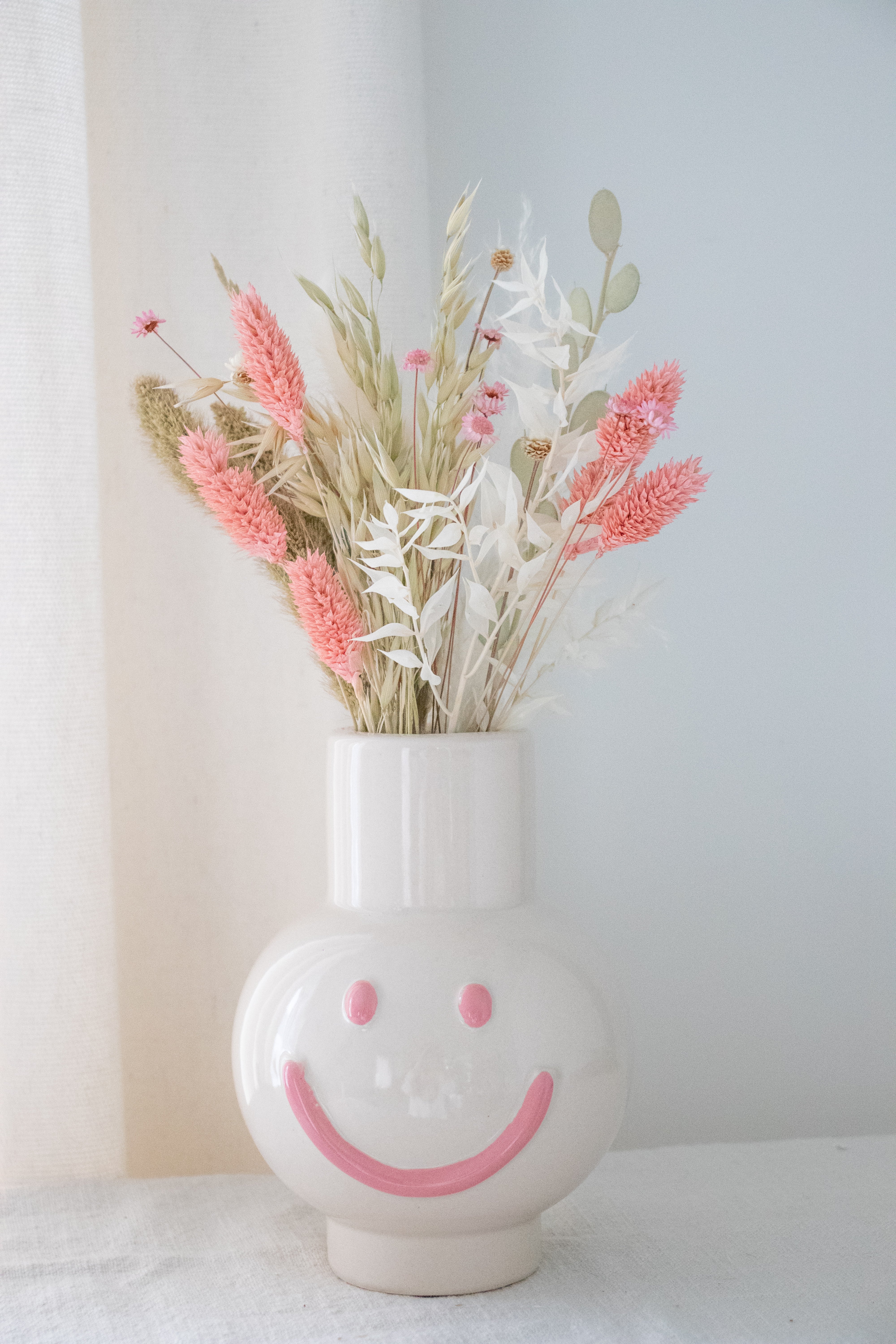 Roze vaas met droogboeket
