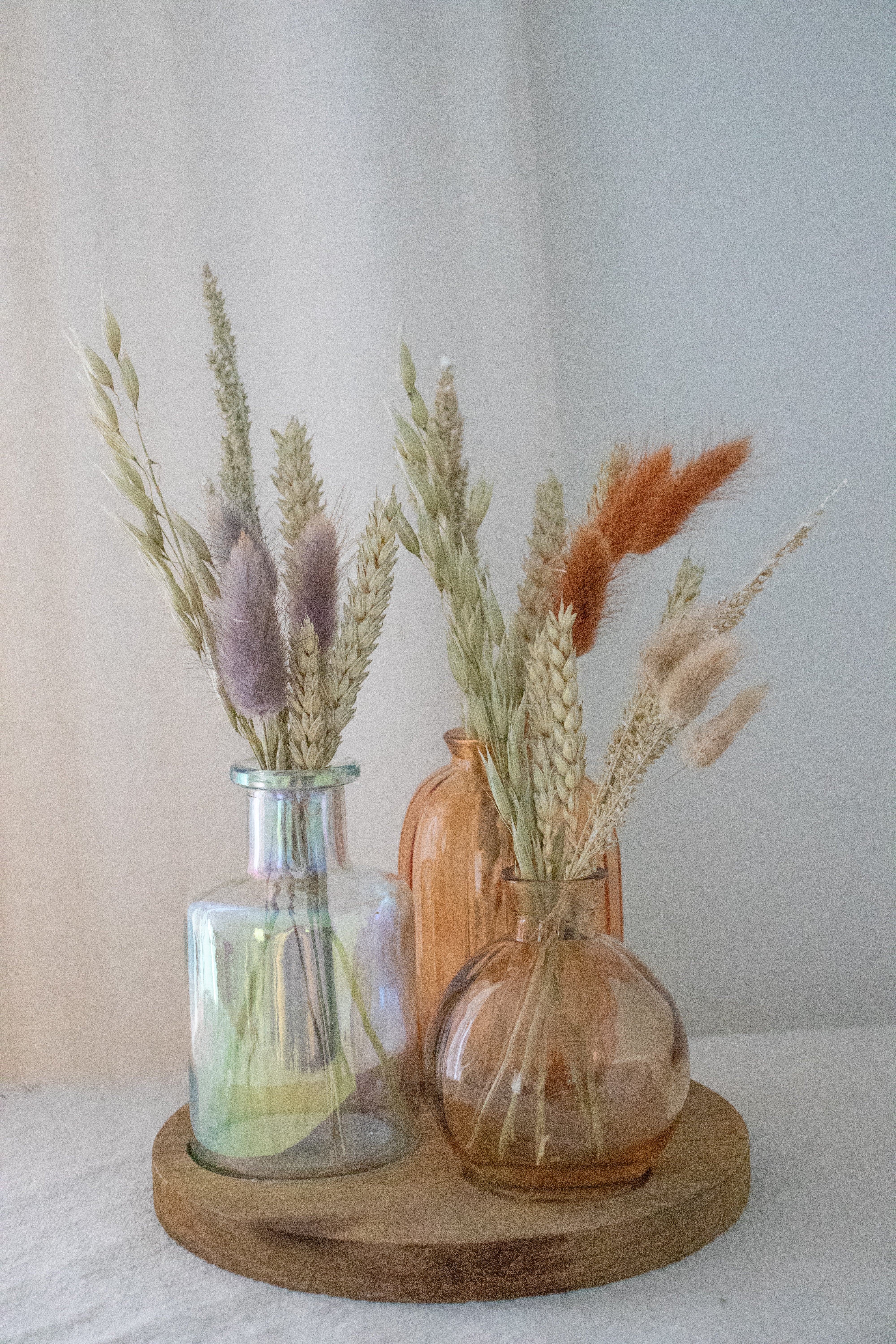 Set van 3 mini-vaasjes met droogbloemen
