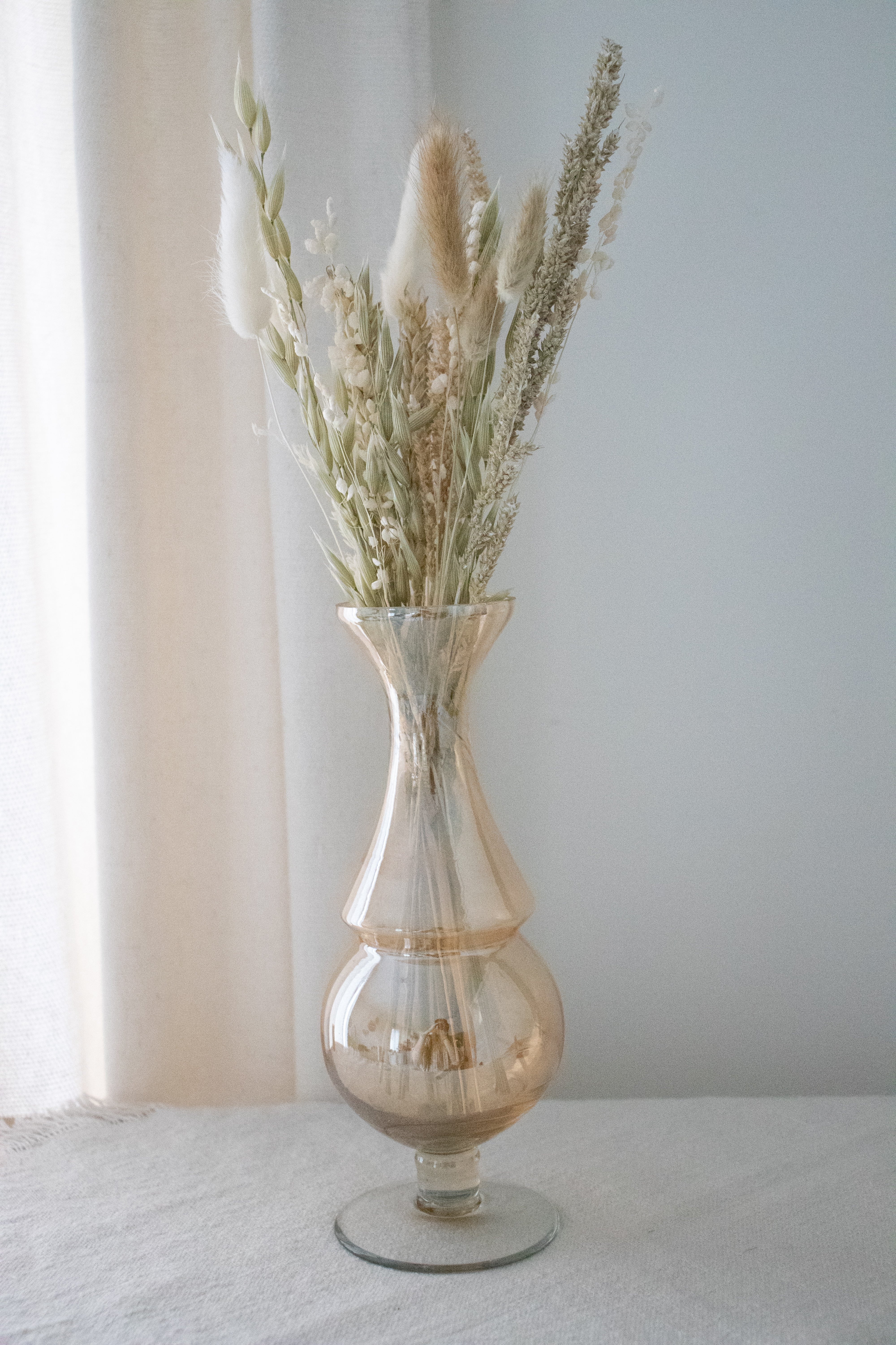Vintage glazen vaas met droogbloemen