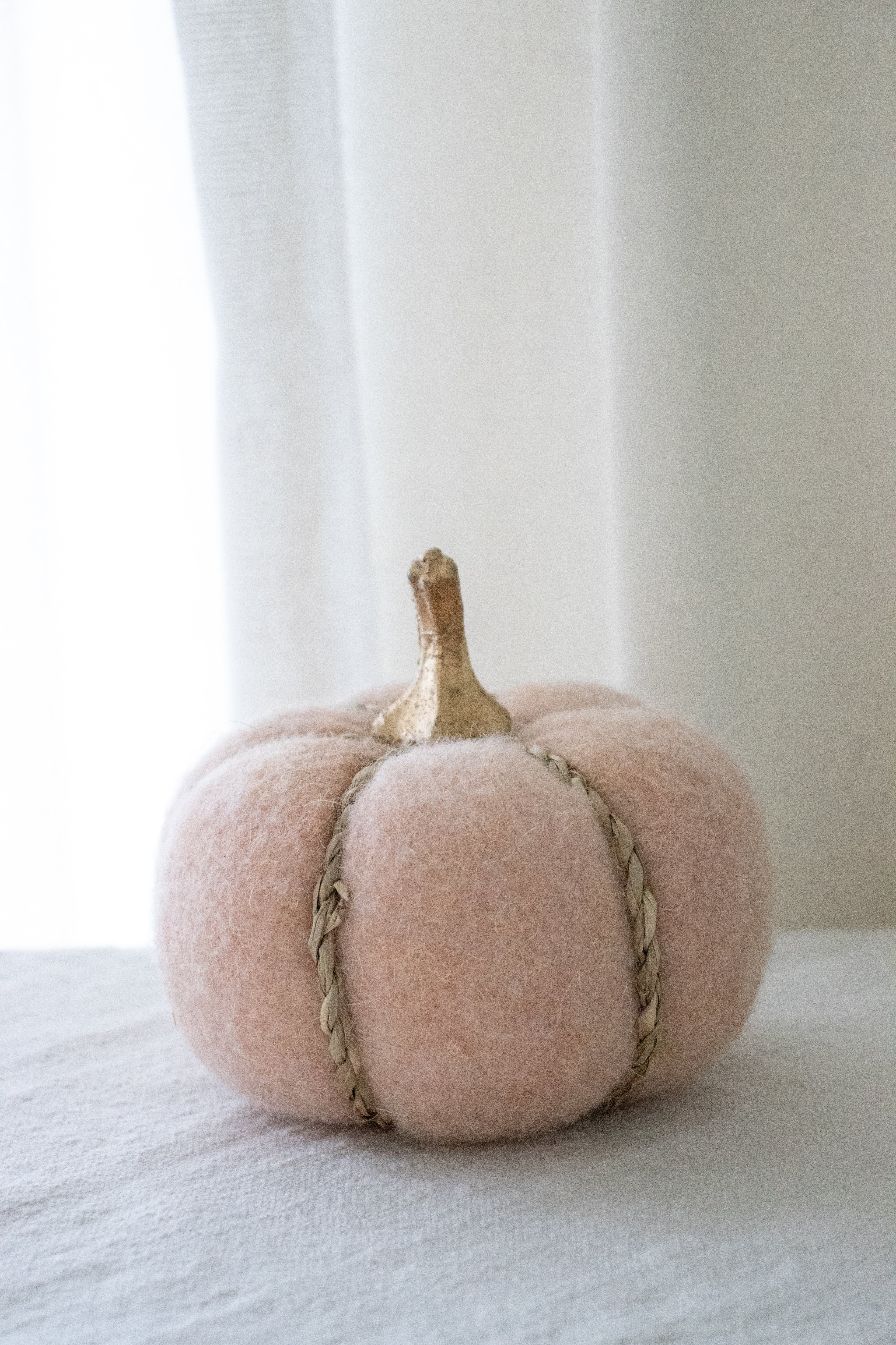 Een zachte, cosy toevoeging aan je herfstdecoratie 🌸🍂 Deze roze stoffen pompoen met gevlochten detail en goudkleurig steeltje straalt warmte en speelsheid uit. Perfect om te combineren met droogbloemen, kaarsjes en andere pompoentjes voor een knusse najaarssfeer.