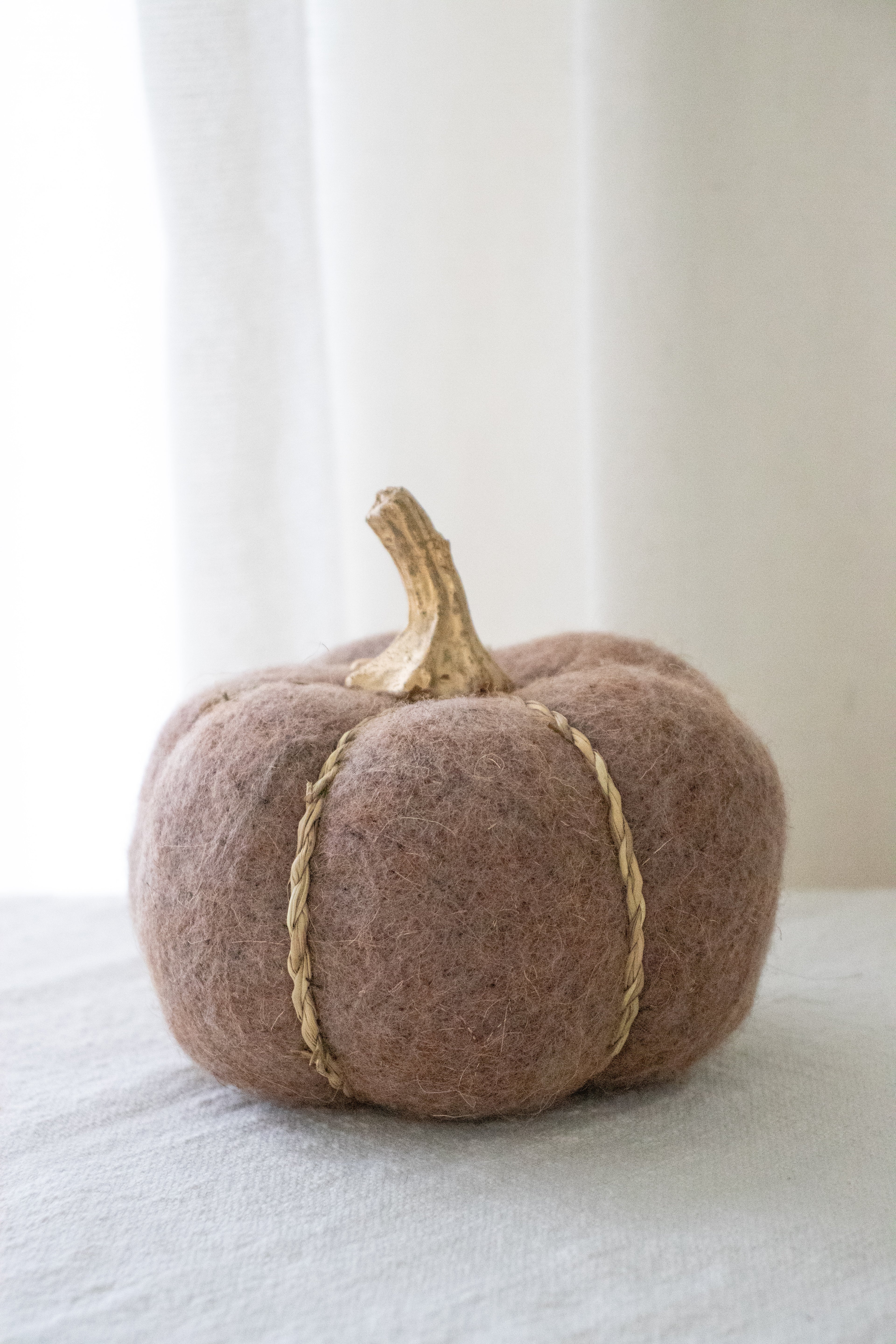 Taupe stoffen pompoen met gouden steeltje