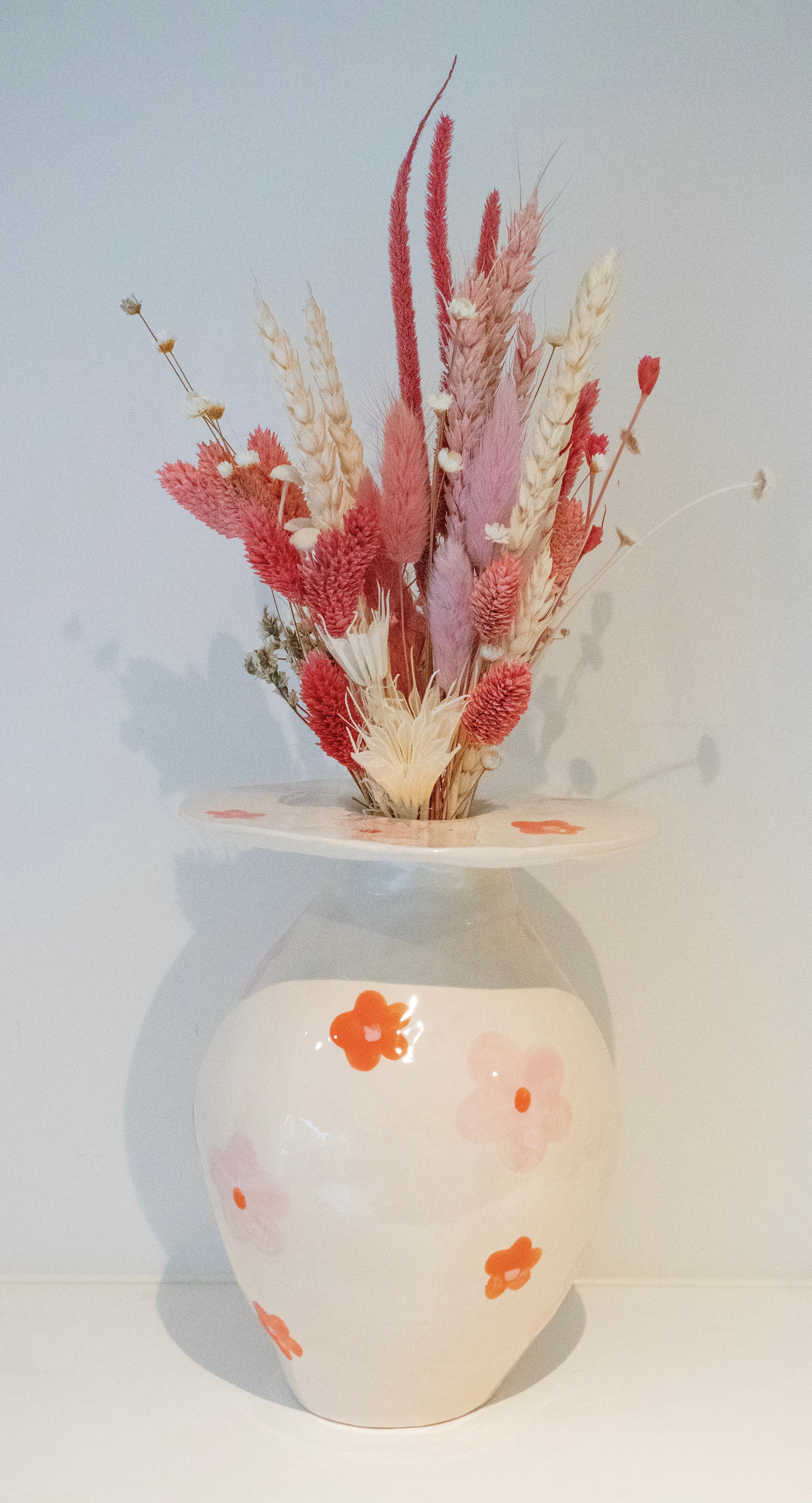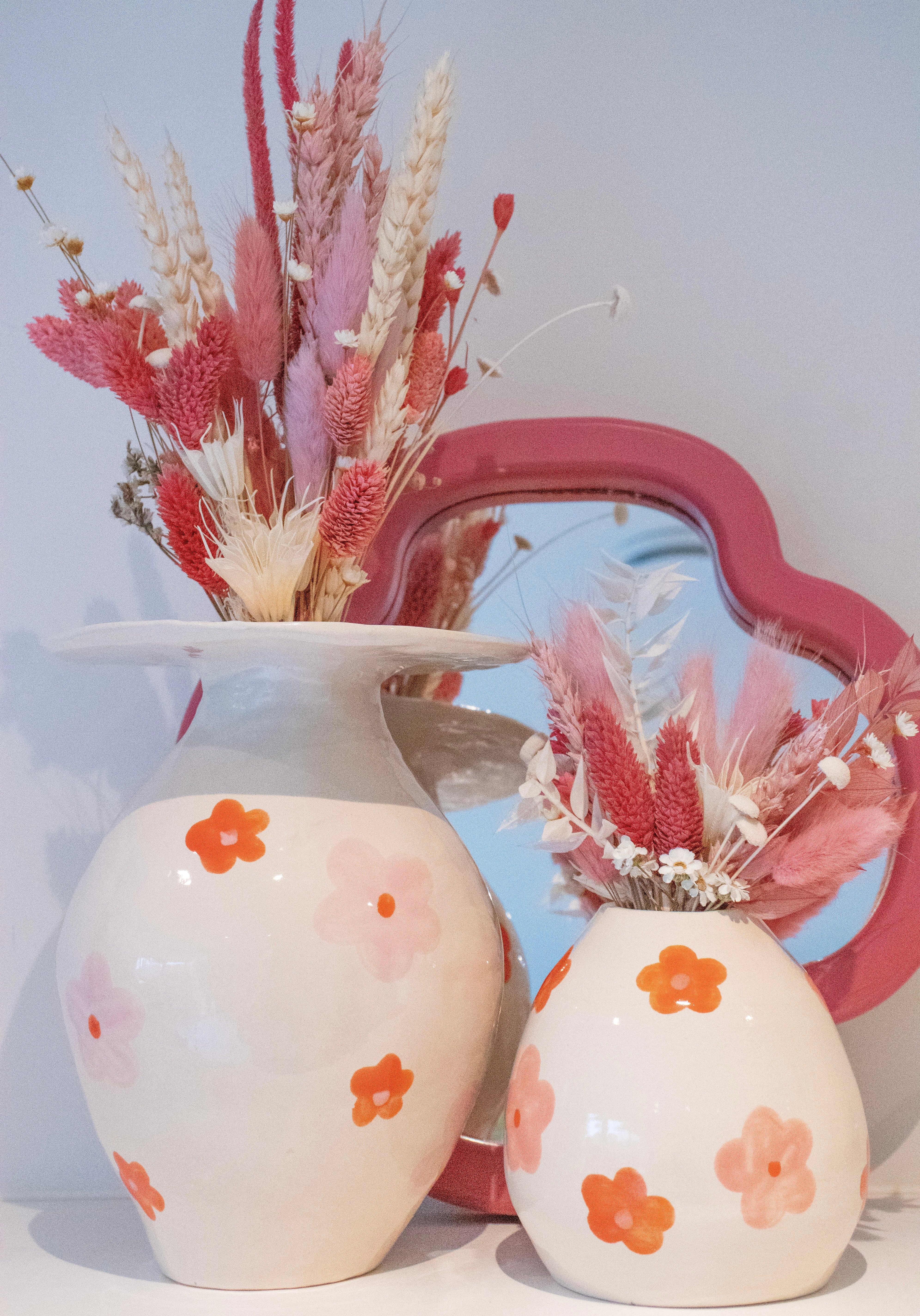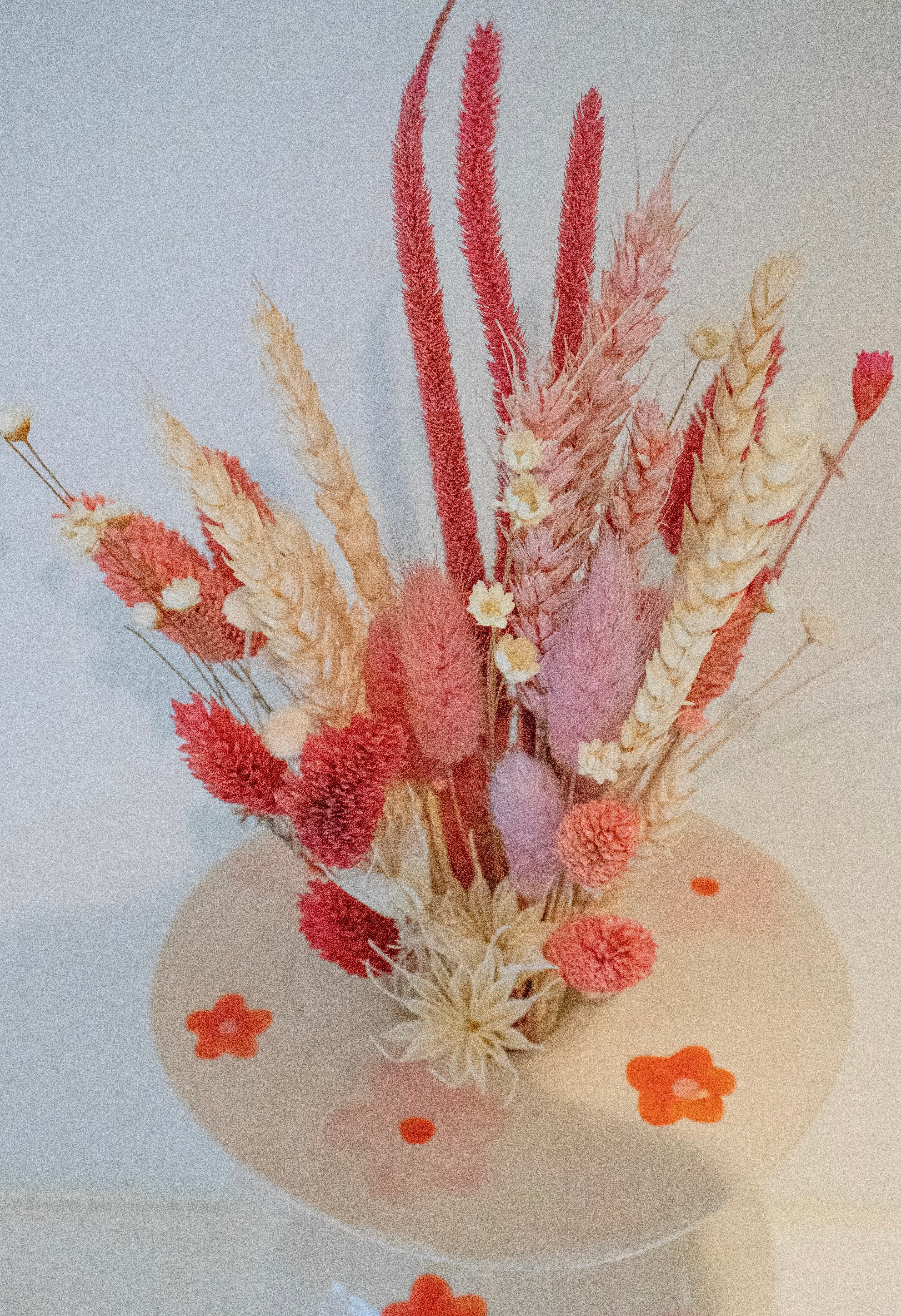 Handgemaakte keramieken vaas, met bijpassend droogboeket.