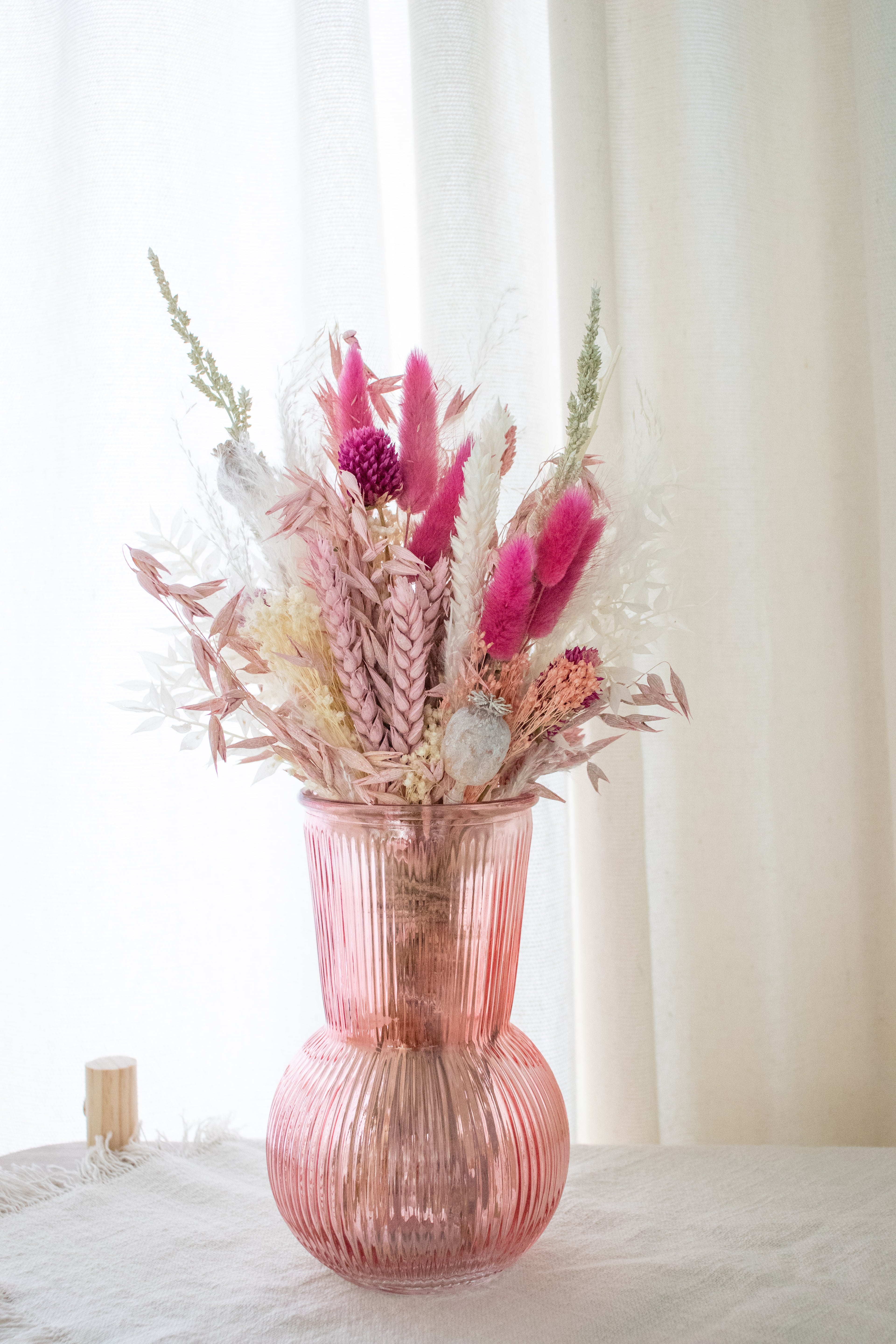 Roze vaas met bijpassend droogboeket