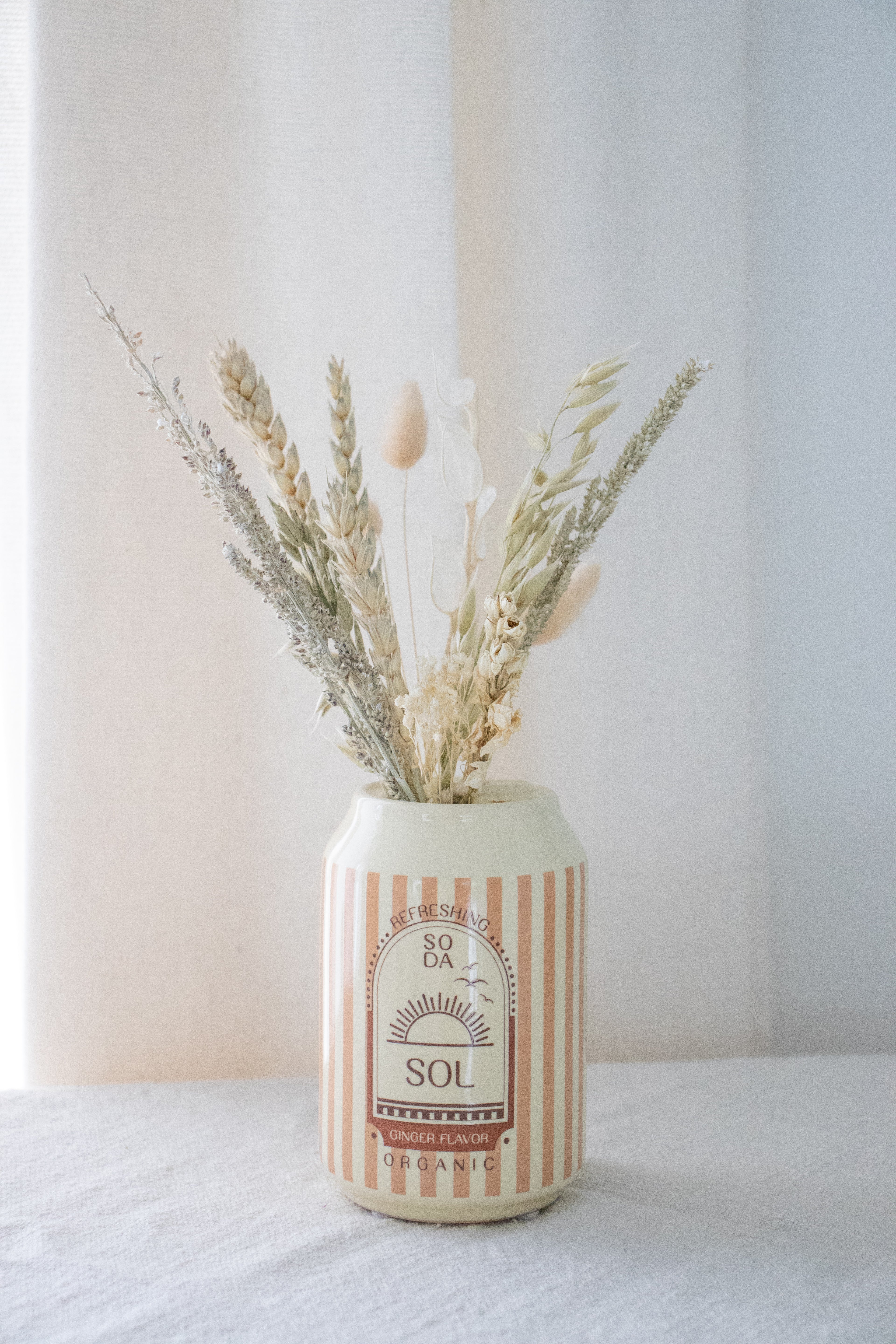 Soda Sol Keramieken Vaasje – Beige/Bruin met Droogbloemen