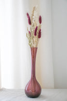 Romantisch en speels: dit boeketje in een diepe bordeauxkleurige vaas brengt warmte in je interieur. De zachtpaarse droogbloemen zorgen voor een subtiele pop of colour, zonder té aanwezig te zijn. Perfect voor wie houdt van cosy vibes.