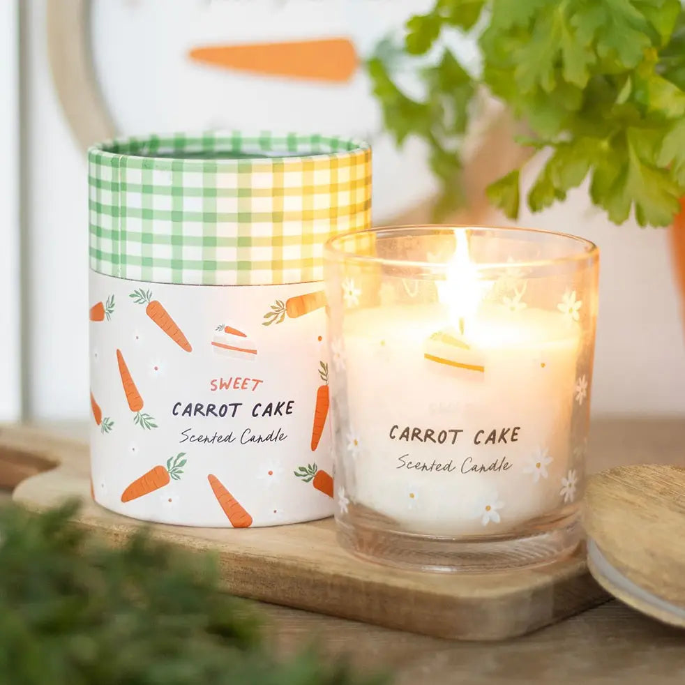 Vul je huis met de rijke, verwarmende geur van versgebakken worteltaart met deze geurkaars in glas. Met zoete taart- en wortelillustraties op de verpakking is het een keurig gepresenteerd cadeau-idee voor nieuwe huizen of gewoon als een manier om het huis op te frissen.